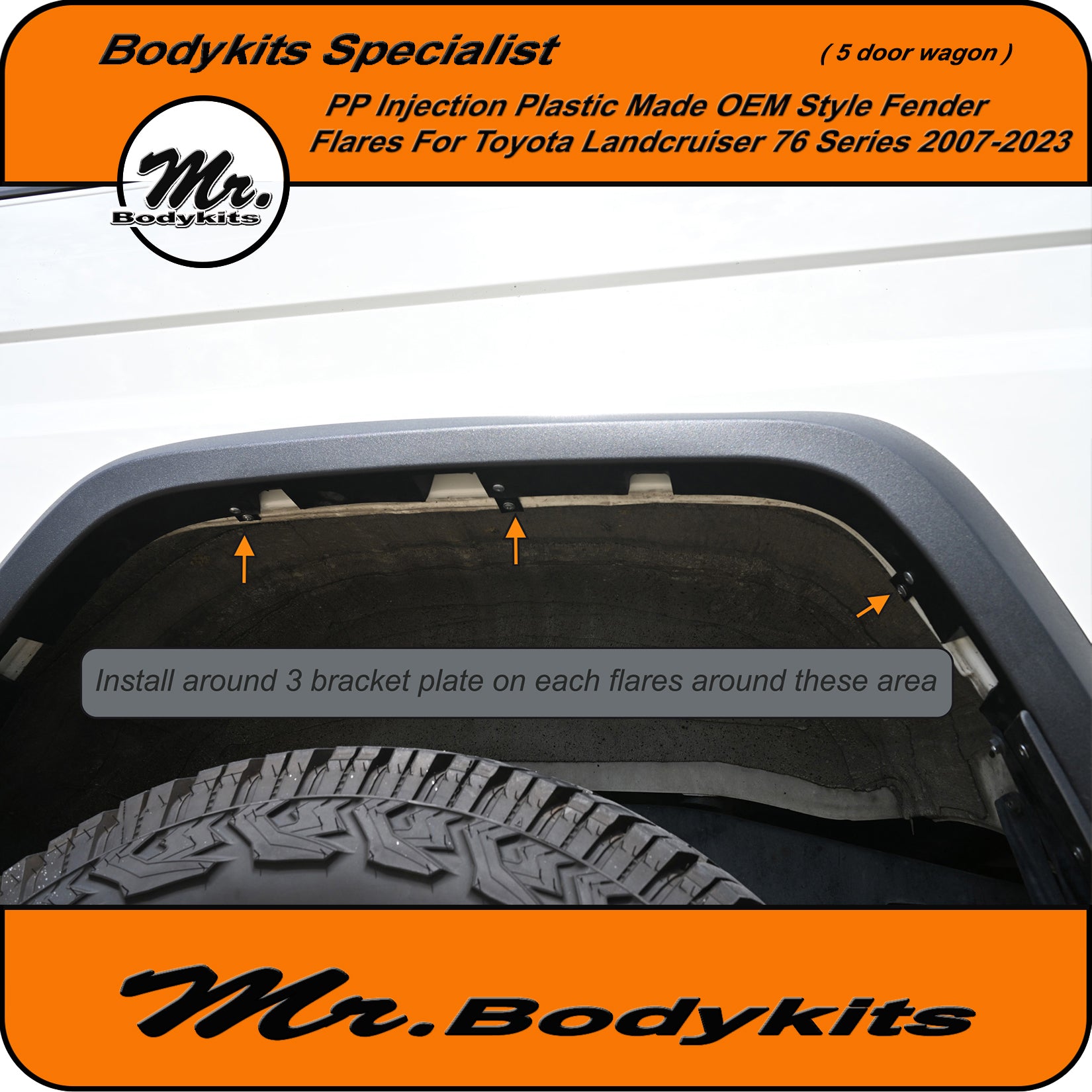 .Toyota LandCruiser 76 Series Wagon Fender Flares (2007–2023) – 12-Piece Set | PP Injection Plastic