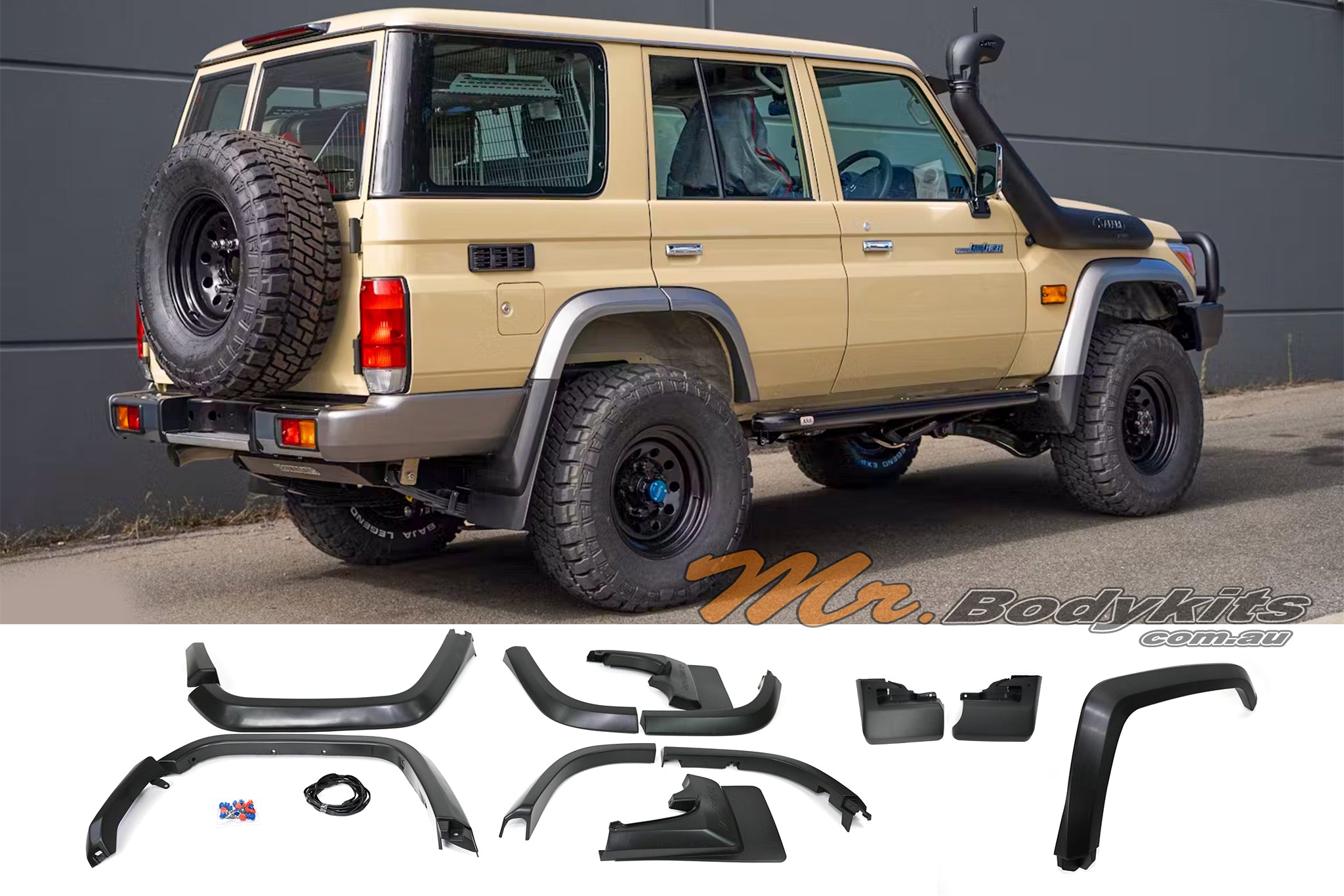 Upgrade your Toyota LandCruiser 76 Series with this robust 12-piece fender flare kit, designed for both form and function. Built using genuine-grade PP injection plastic, this set offers superior durability and fitment—far beyond standard ABS or fiberglass options.