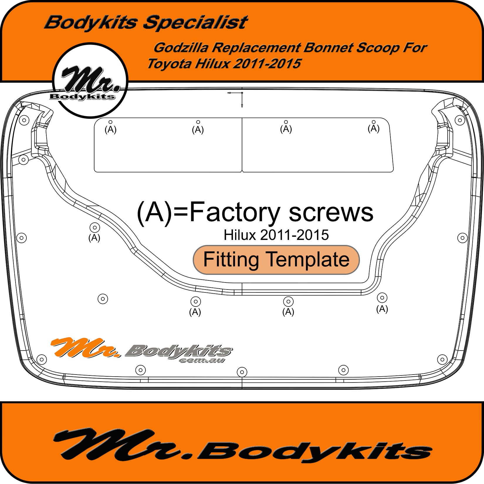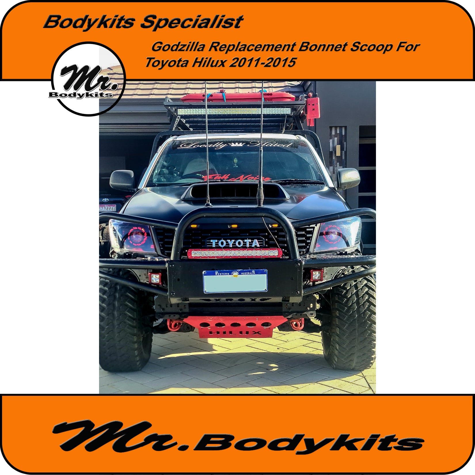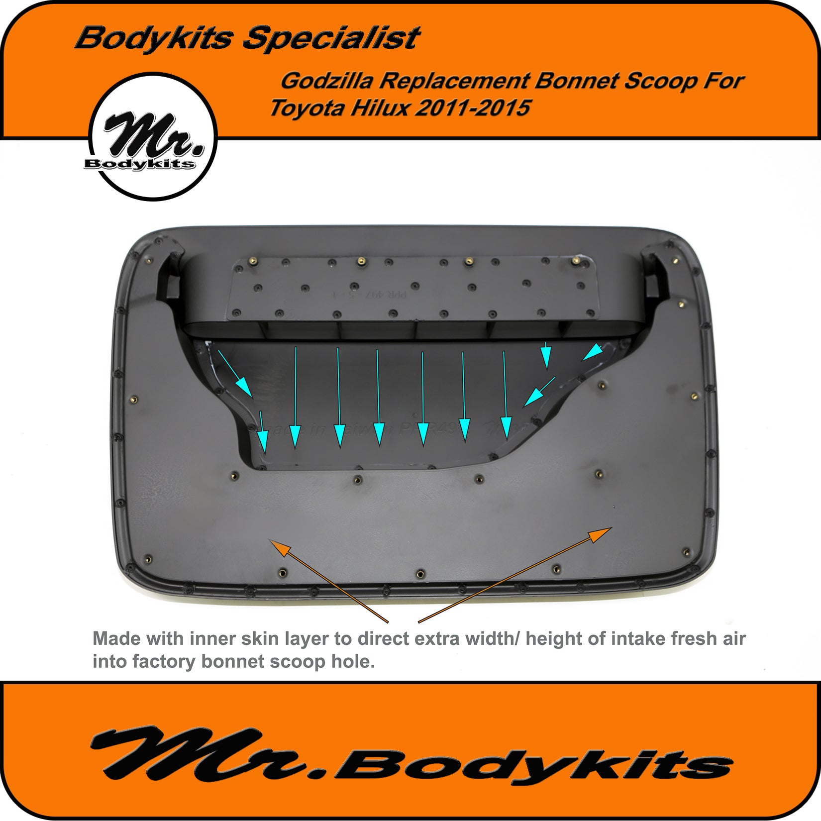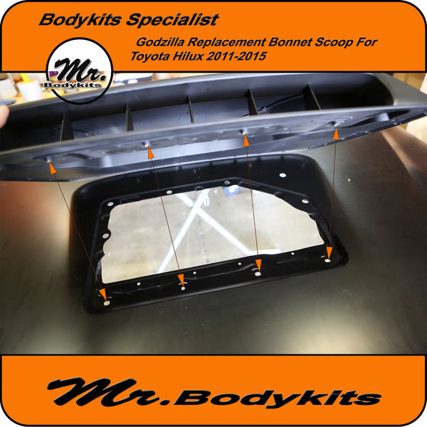 Mr. Godzilla extra-wide direct replacement bonnet scoop suit Toyota Hilux 2011-2015