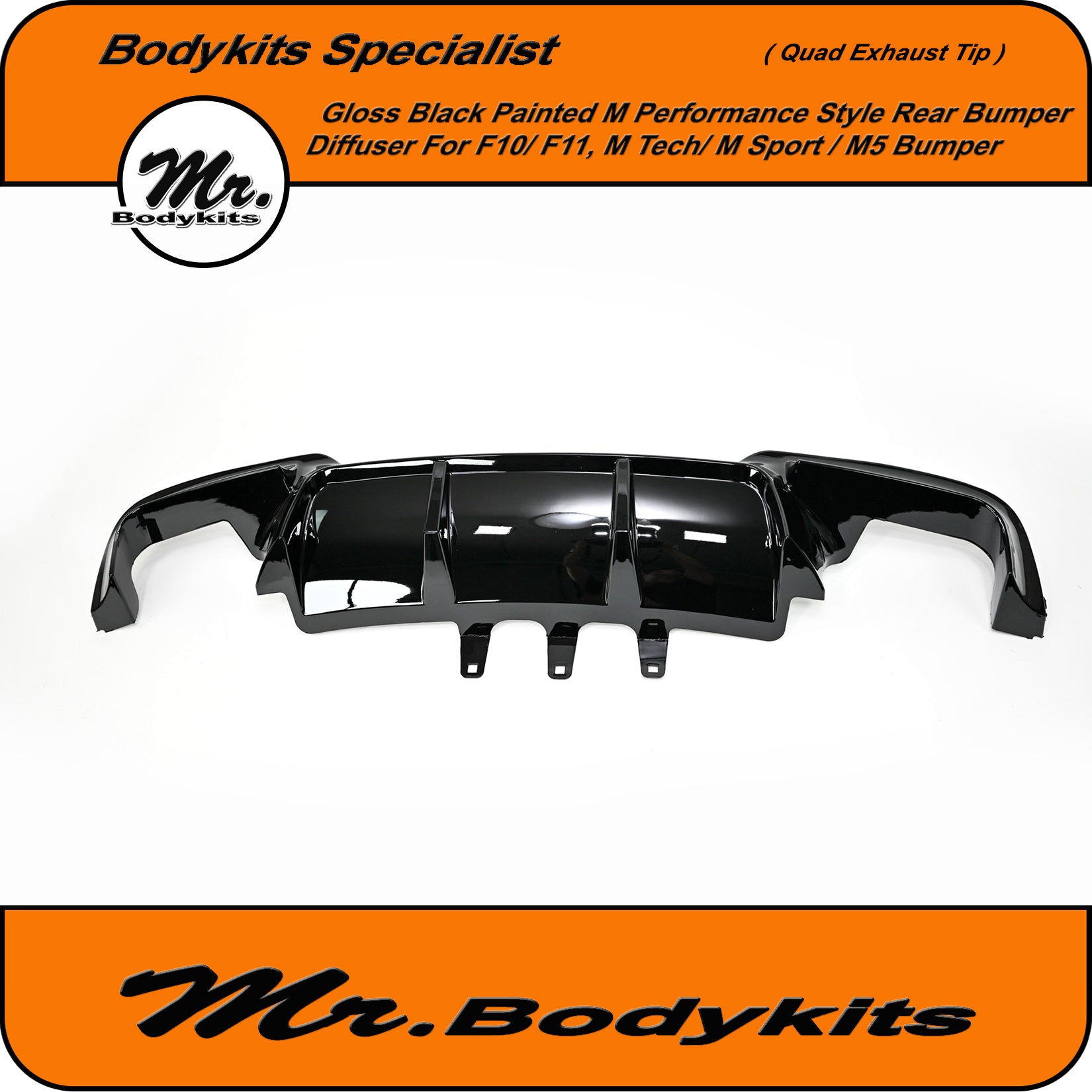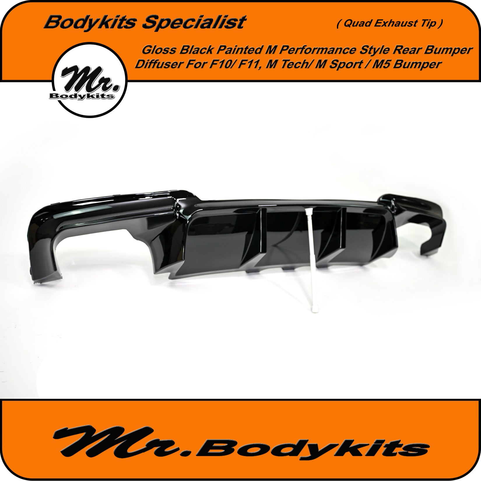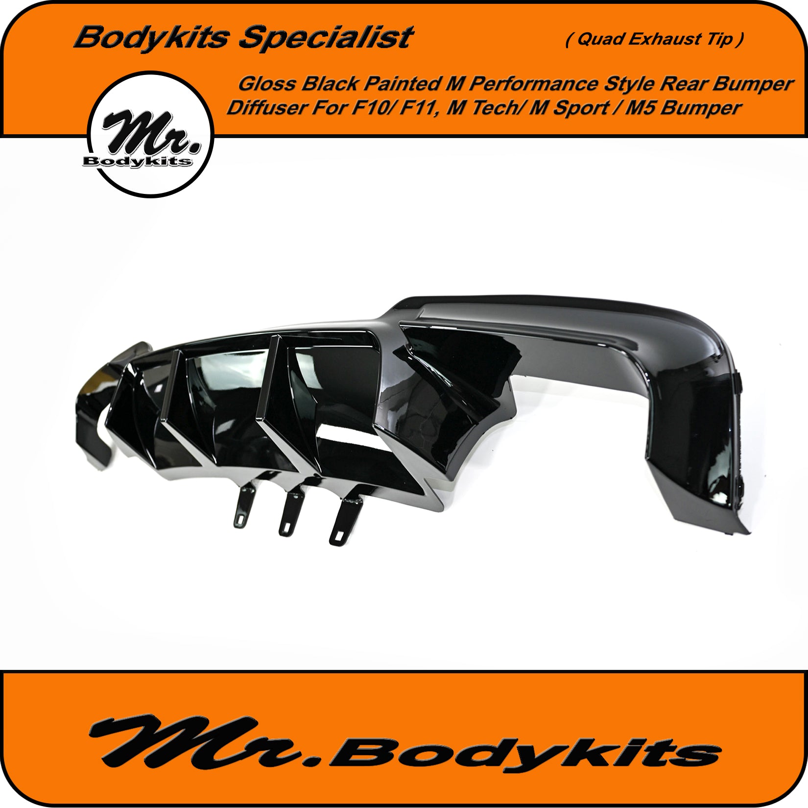Brand new Mr plastic made gloss black M-Performance style rear bumper diffuser lip with dual exhaust outlet for BMW 5 Series 2010-2016 F10 / F11 sedan and wagon ( fits M-Tech M Sport and M5 factory bumper only )