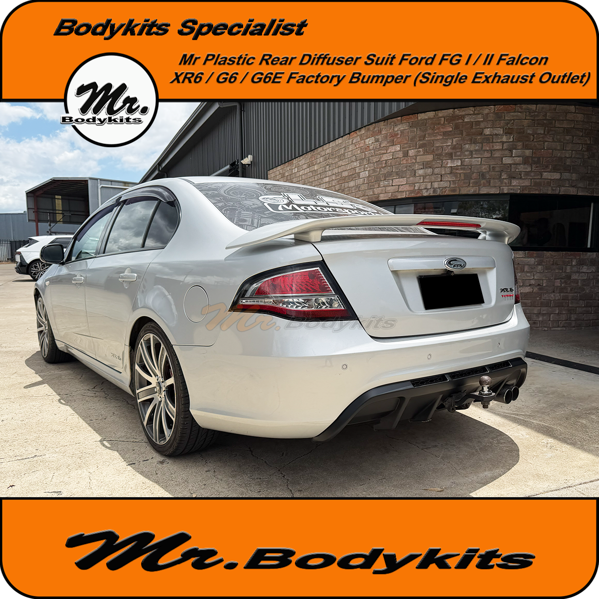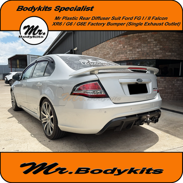 Bring fresh style and factory-inspired detail to your FG Falcon with this brand new single-exit rear bumper diffuser from Mr Bodykits. Built for XR and G6 sedan models, this upgraded version now features injection-moulded construction and integrated honeycomb mesh, for a clean, OEM-style finish and better durability.