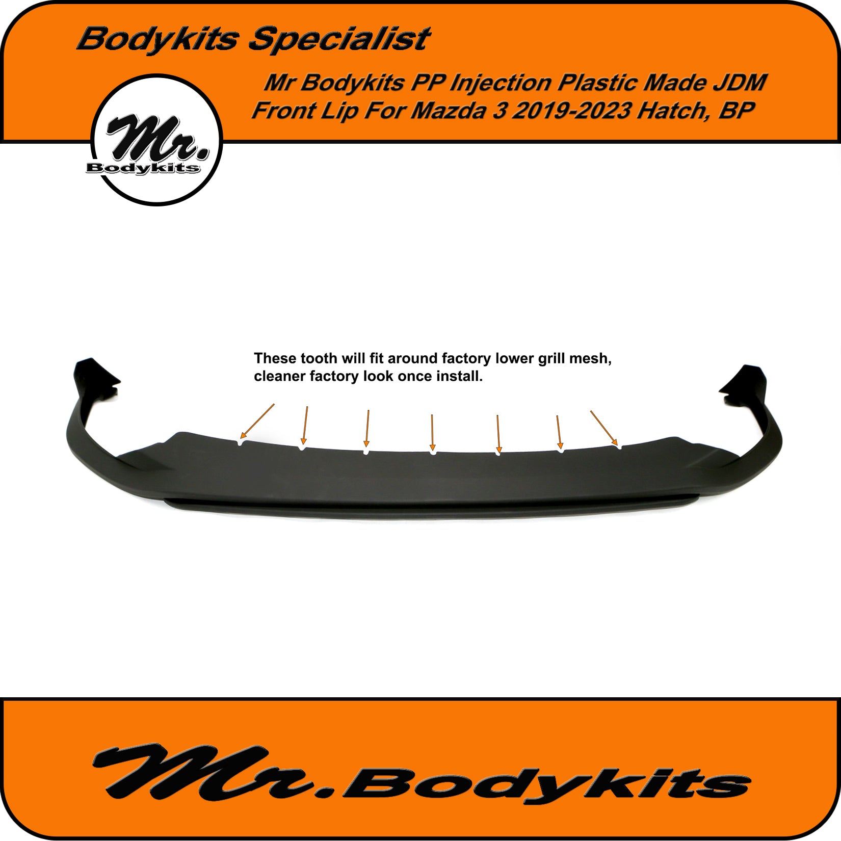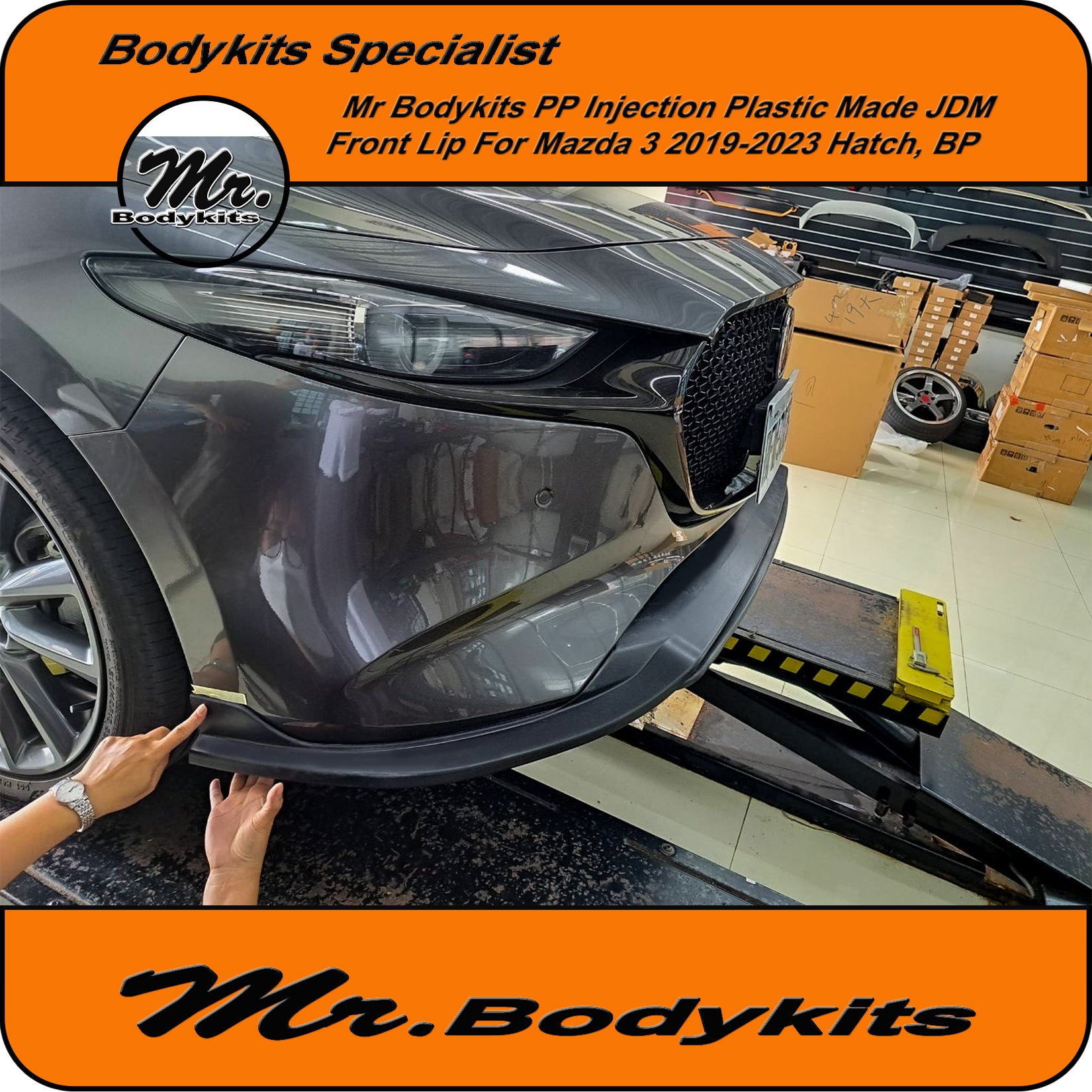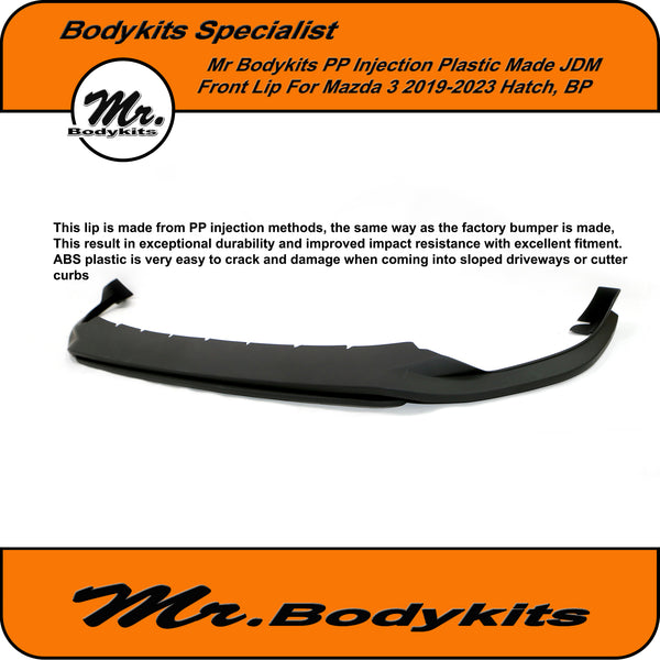 Mr Quality injection PP plastic JDM style front bumper lip for Mazda 3 2019-2025 hatch BP