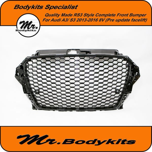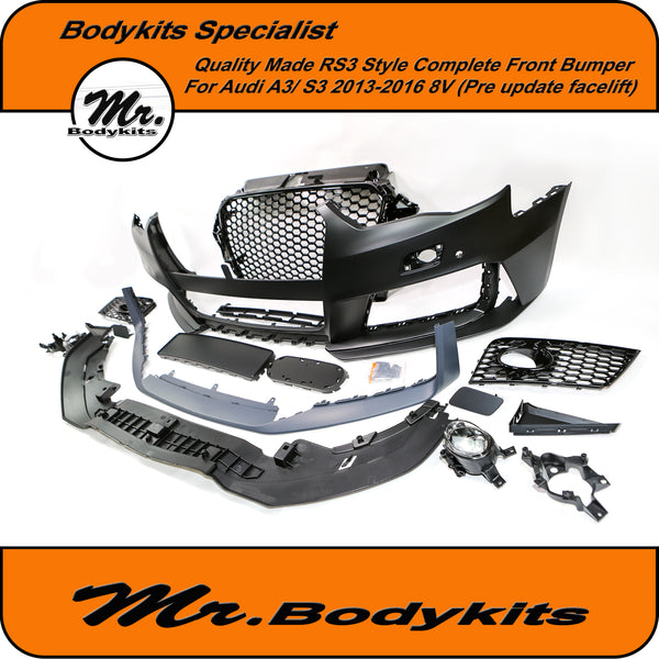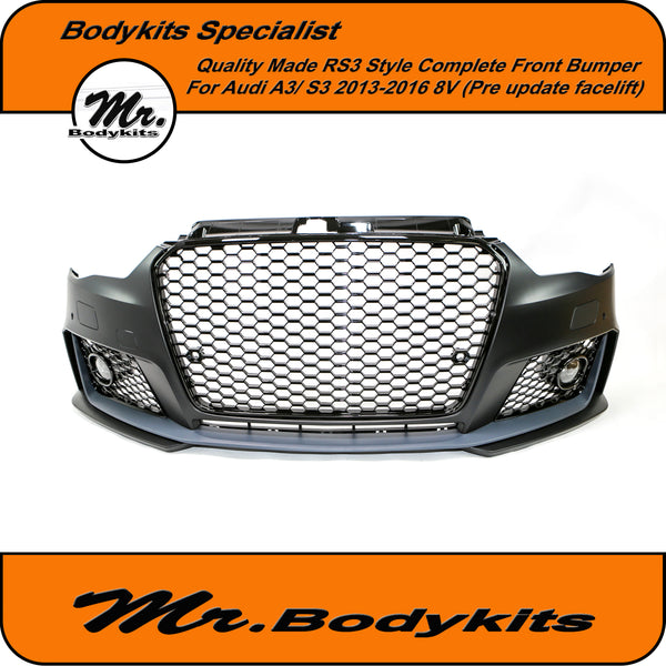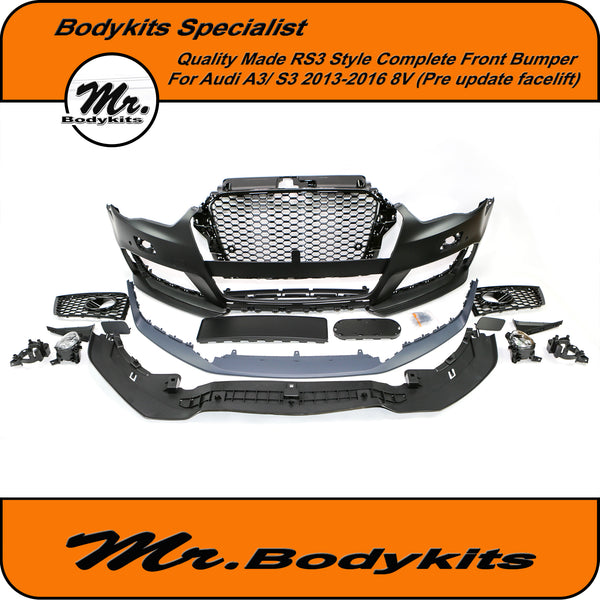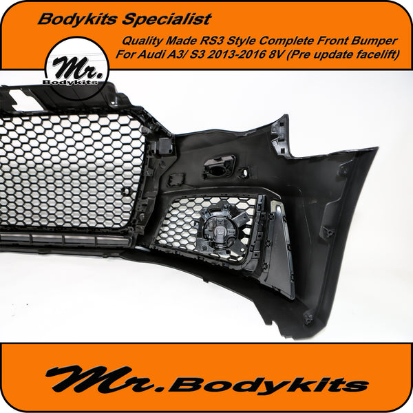 Brand New Quality Made RS3 Style Bumper With Grille and Foglight For Audi A3 2013-2016 8V Series Hatch