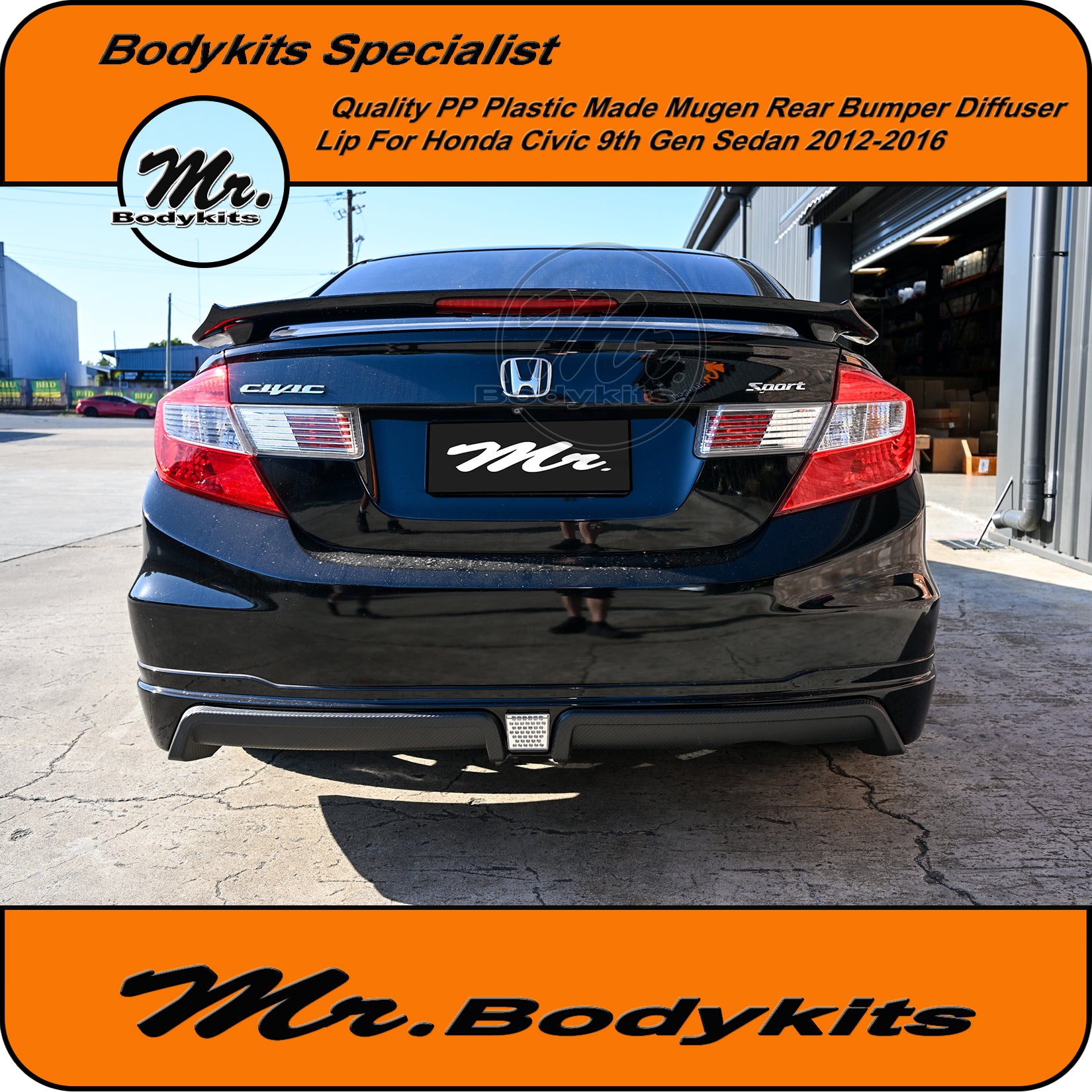 Mugen Style Rear Bumper Diffuser Lip – Honda Civic Sedan 9th Gen (2012–2016 FB)