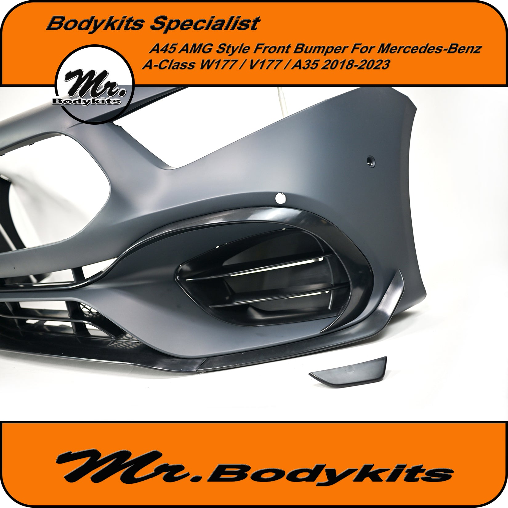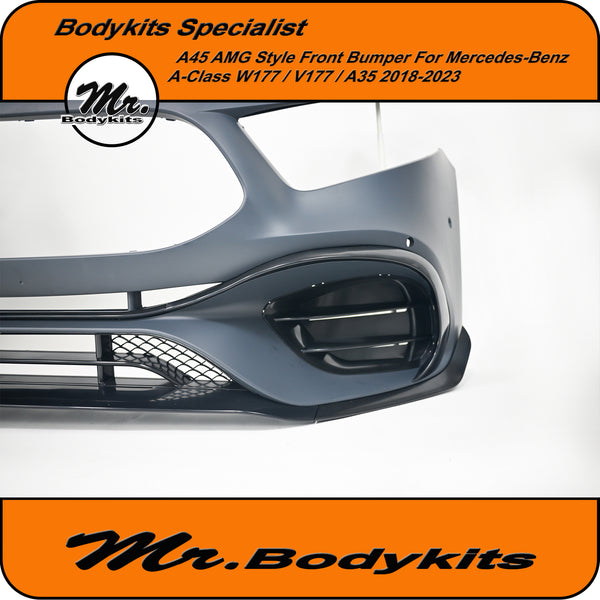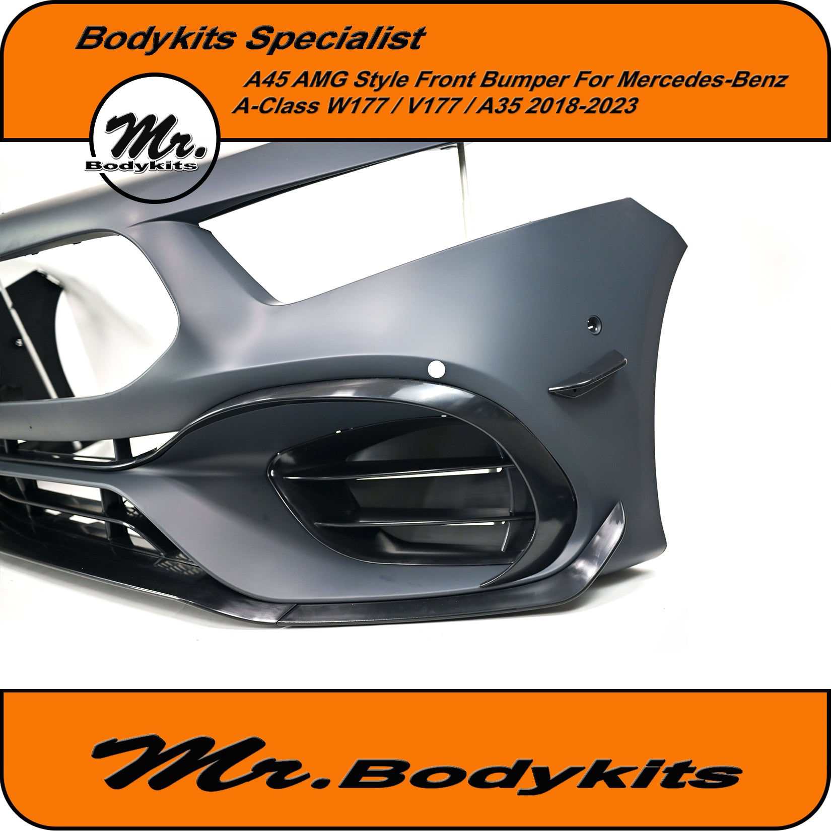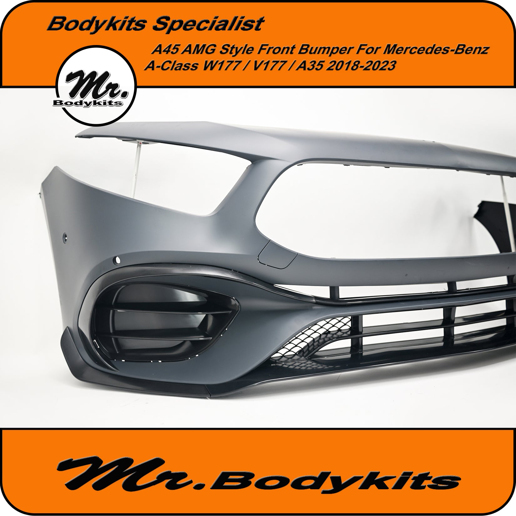 Transform the front-end look of your A-Class with this A45 AMG style front bumper, designed to suit all Mercedes-Benz A-Class W177 models from 2018-2023.