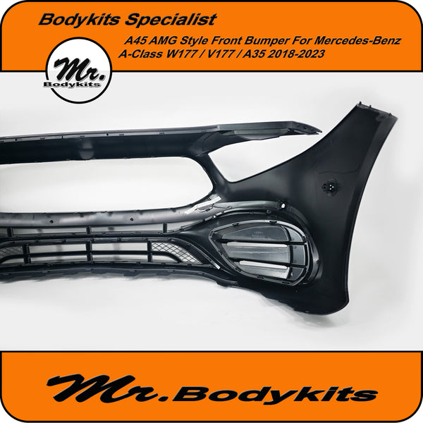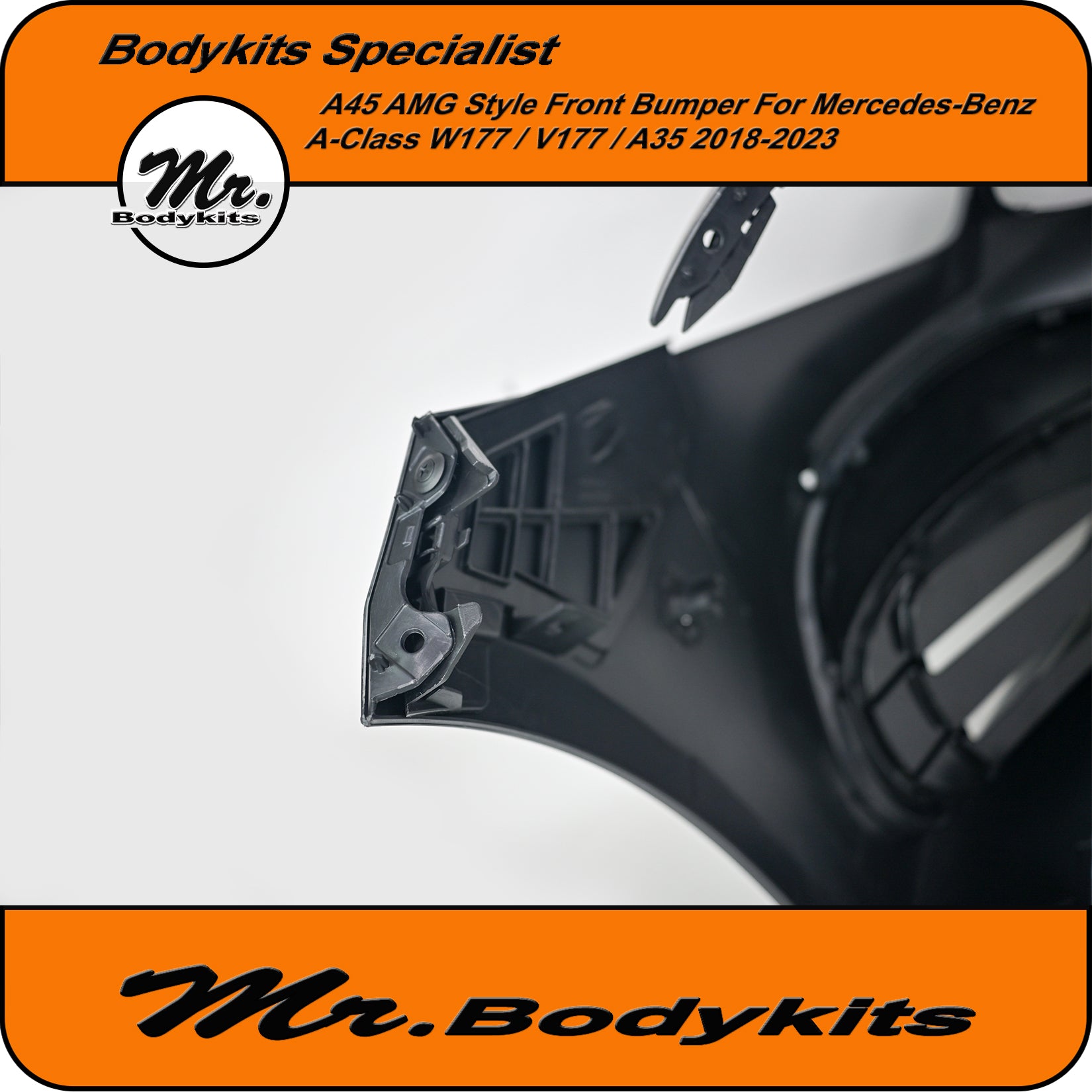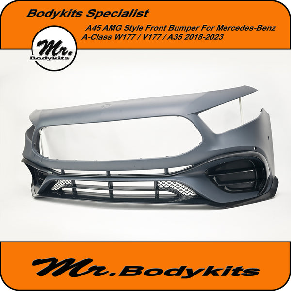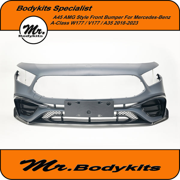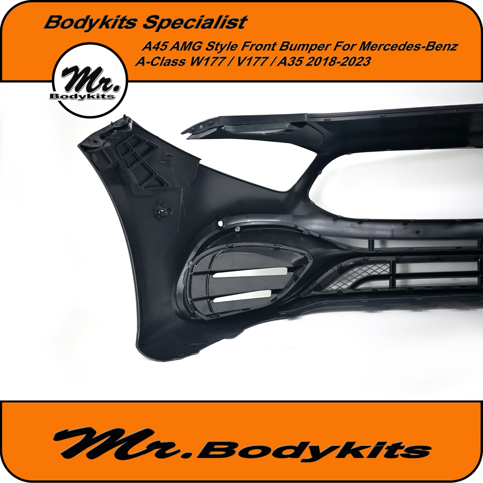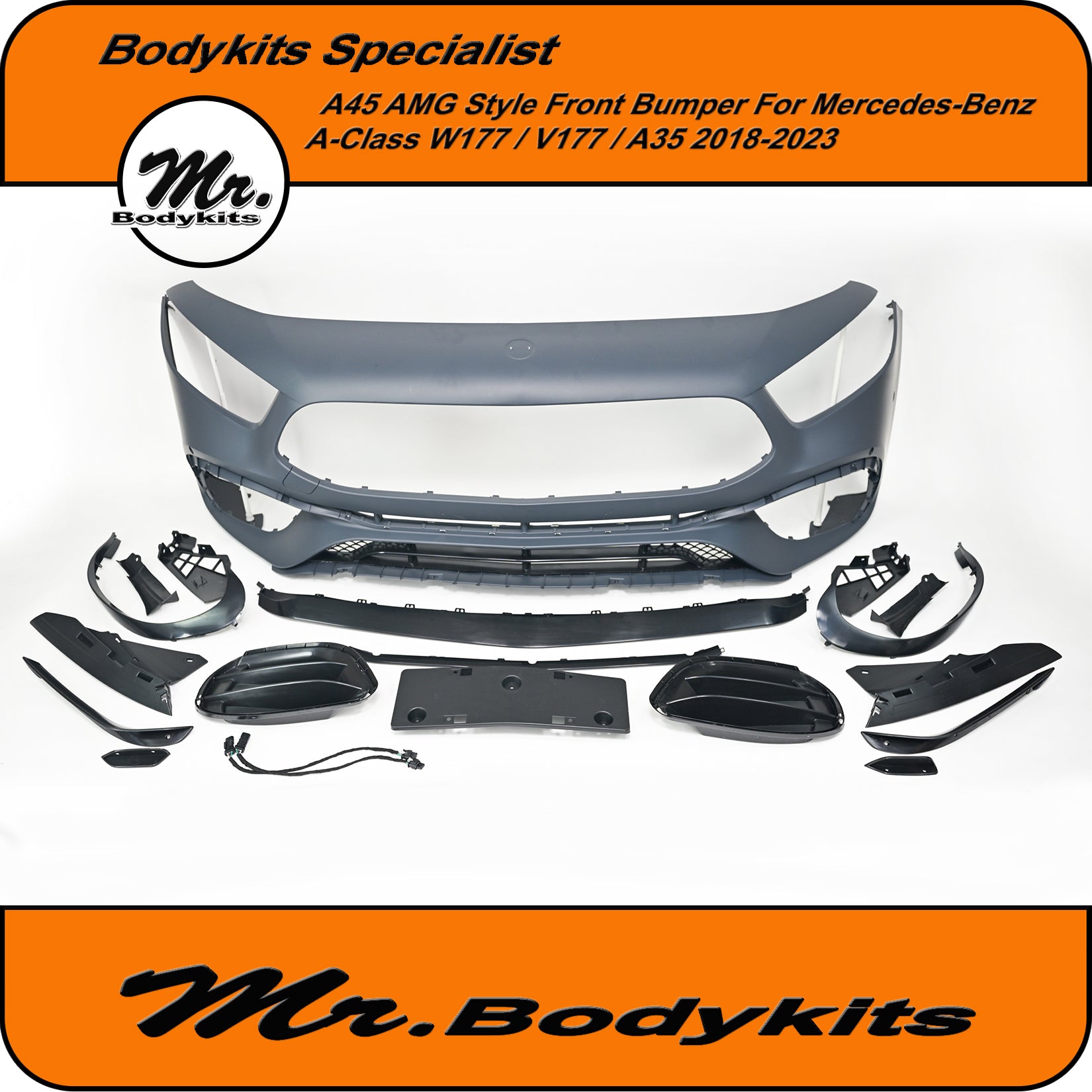 Transform the front-end look of your A-Class with this A45 AMG style front bumper, designed to suit all Mercedes-Benz A-Class W177 models from 2018-2023.