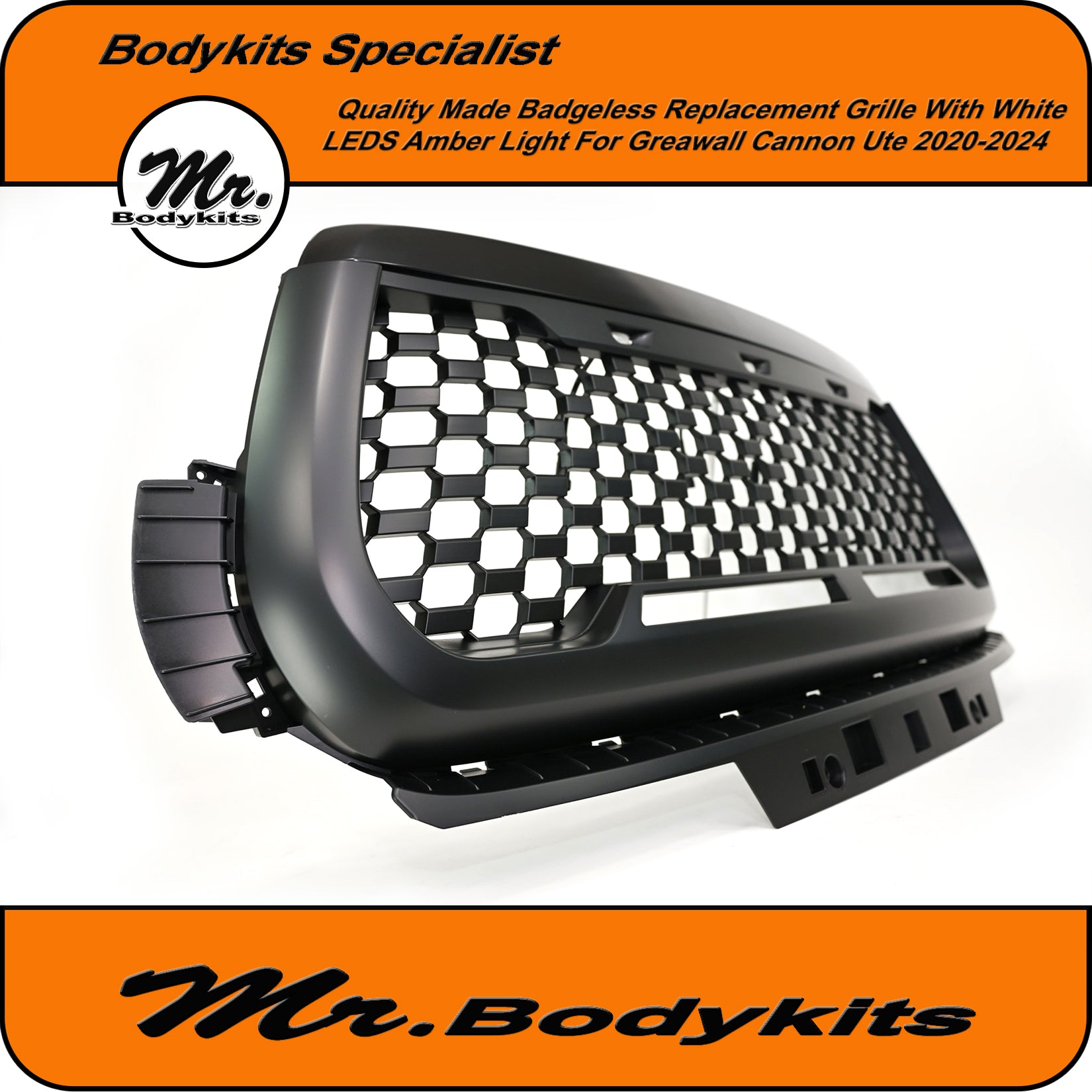 Upgrade the front end of your GWM Canon Ute with this sharp, badgeless replacement grille featuring a smooth satin black mesh design. Designed to suit GWM Cannon, Cannon-L, and Cannon-X models from 2020 to 2024, this grille delivers an aggressive, modern look that works just as well in the city as it does in the bush.