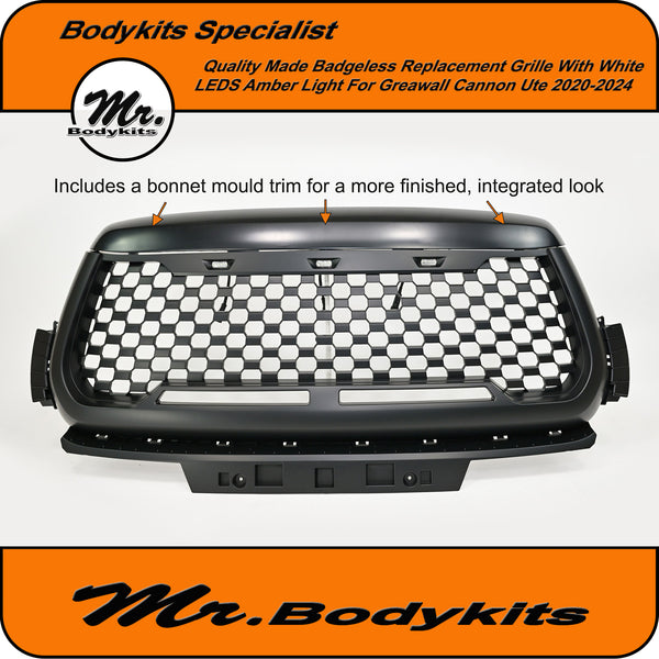 Badgeless Front Grille with Bonnet Mould – Suits GWM Canon / Cannon-L / Cannon-X (2020–2024)