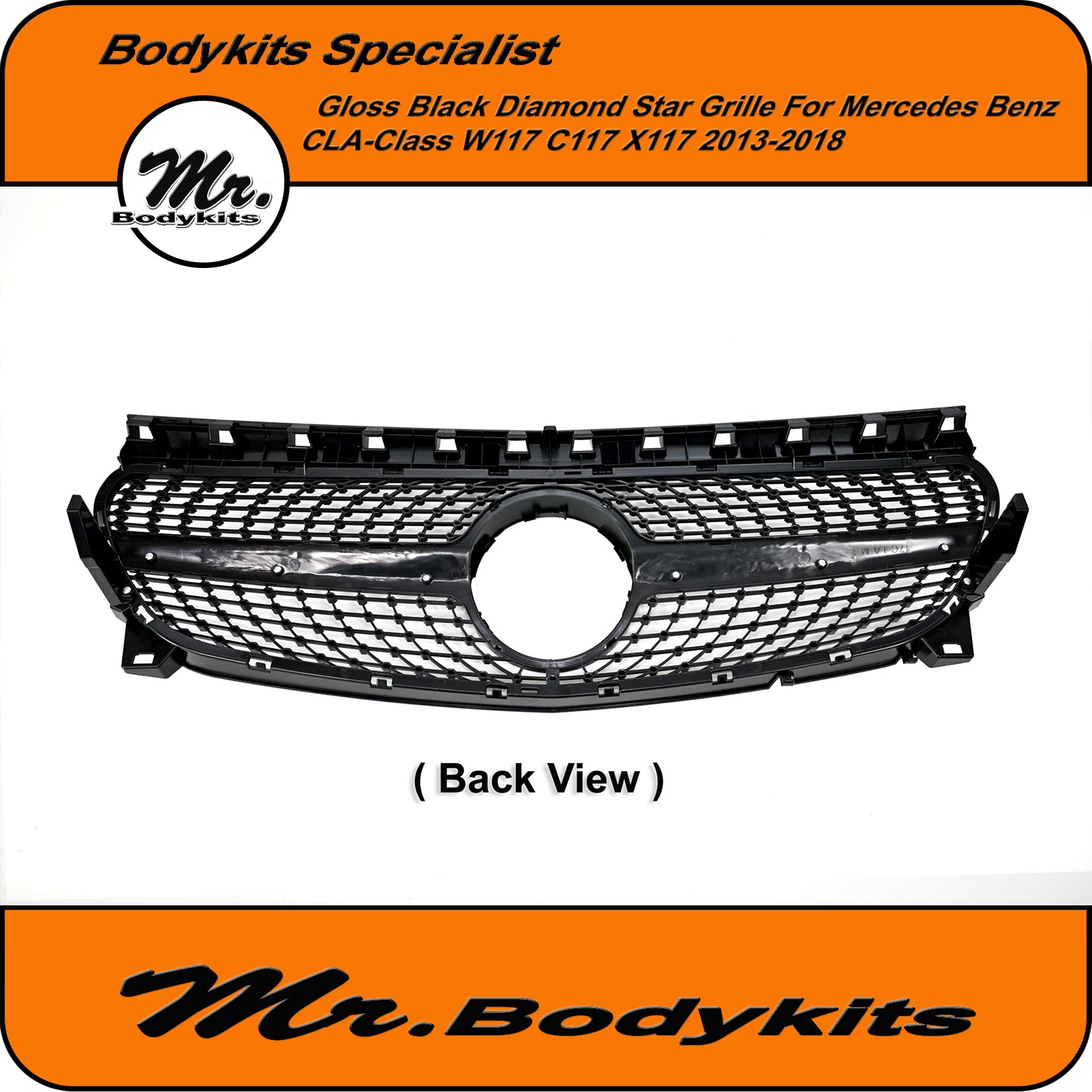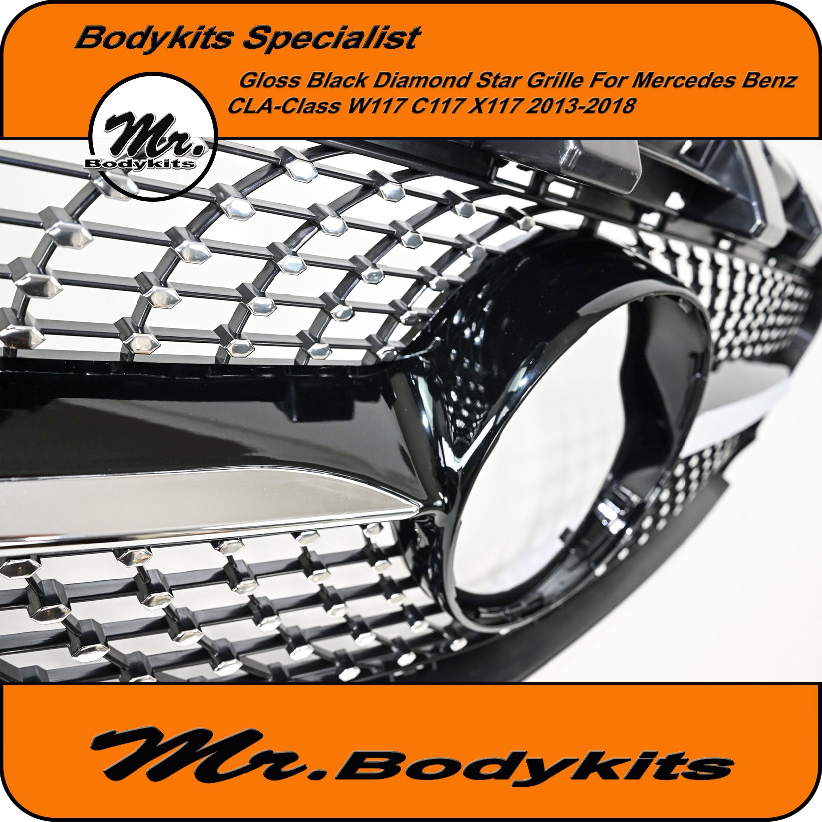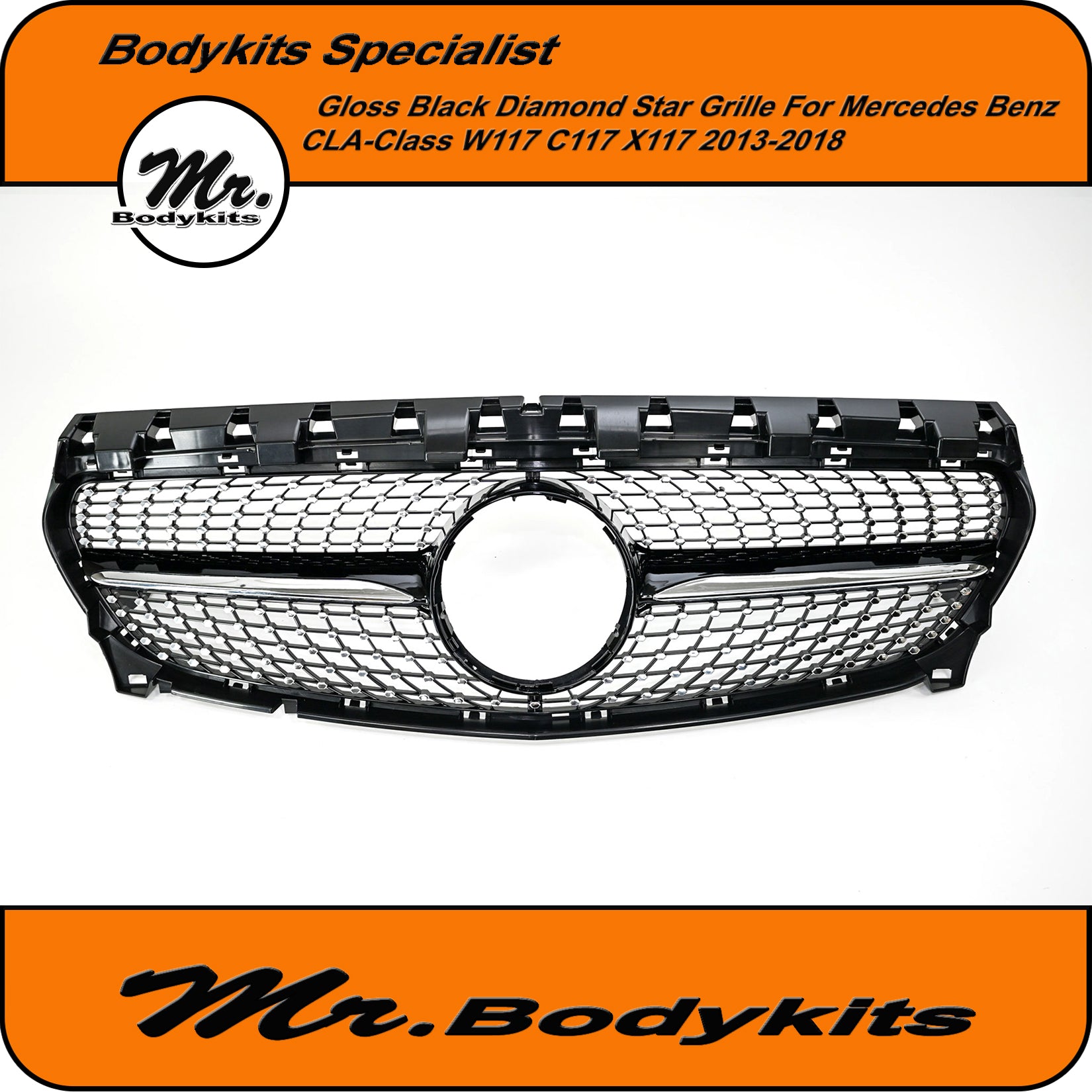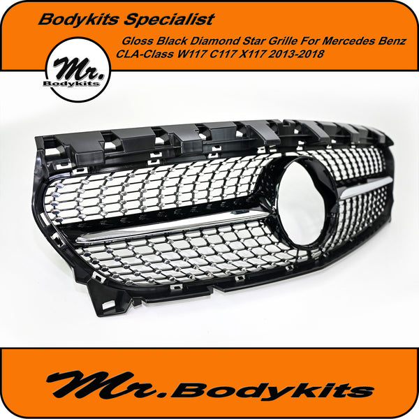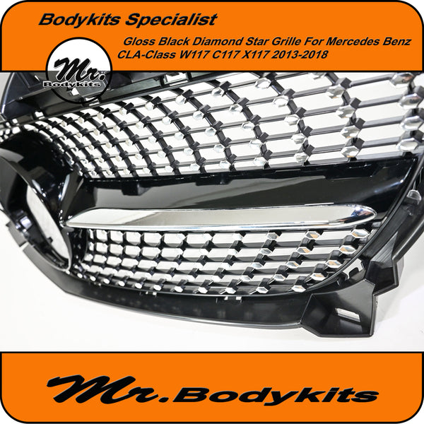 Diamond Star Style Front Grille – Gloss Black for Mercedes CLA Class W117 / C117