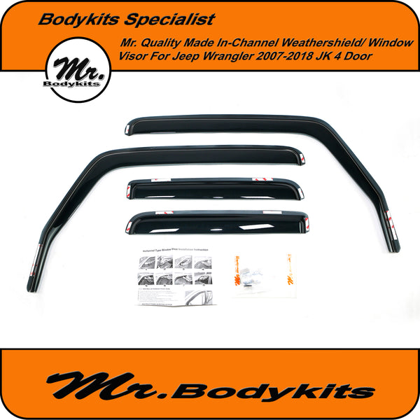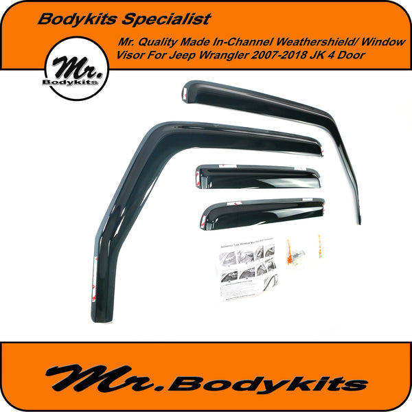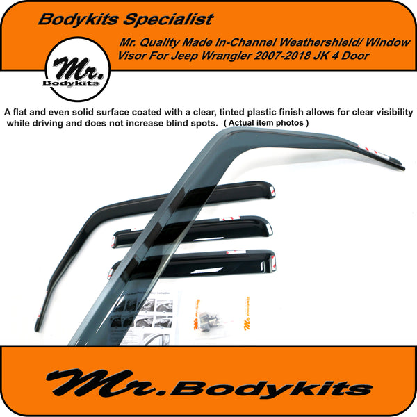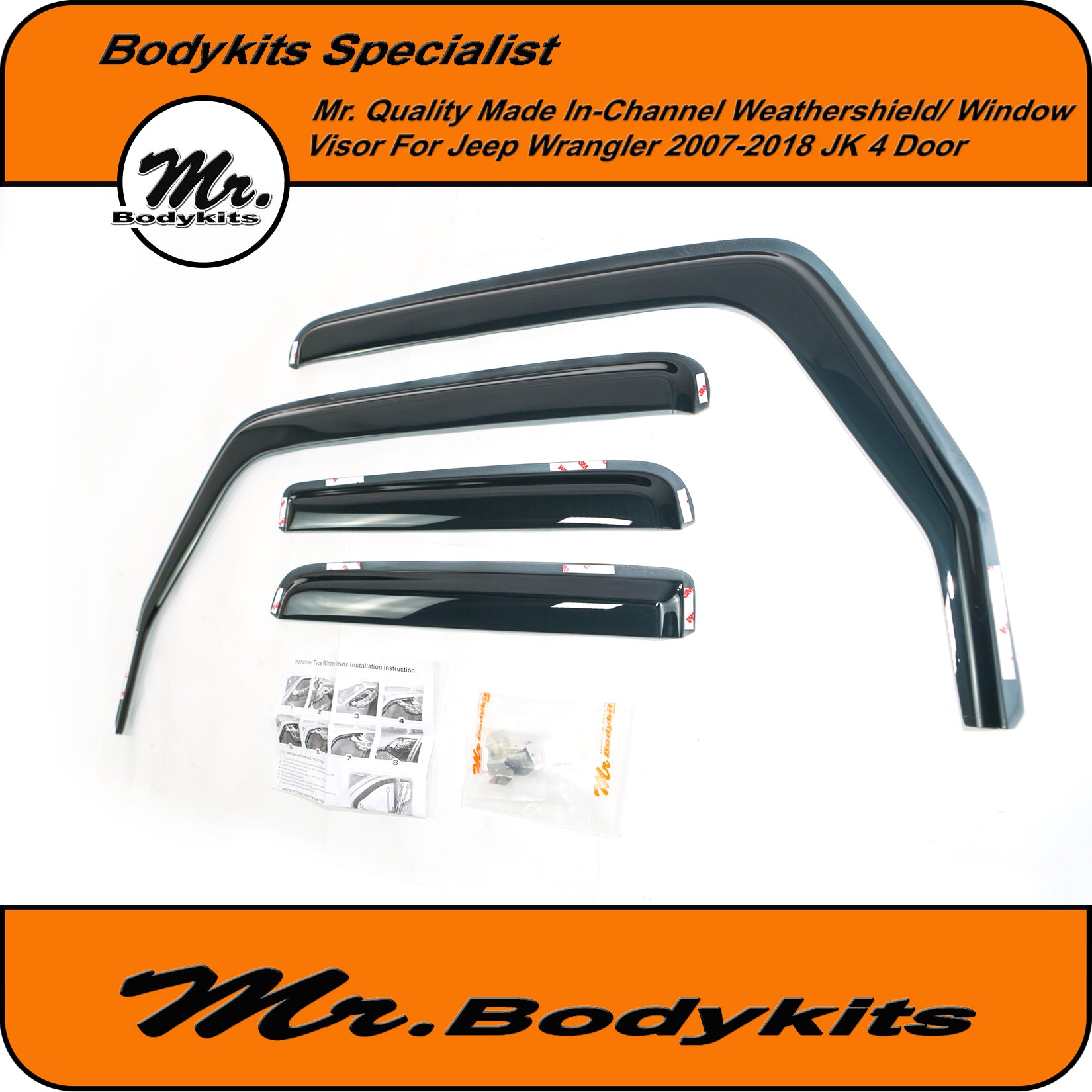 Premium quality in-channel plastic made weather shield/ window visor for Jeep Wrangler 4 door 2007-2018, JK