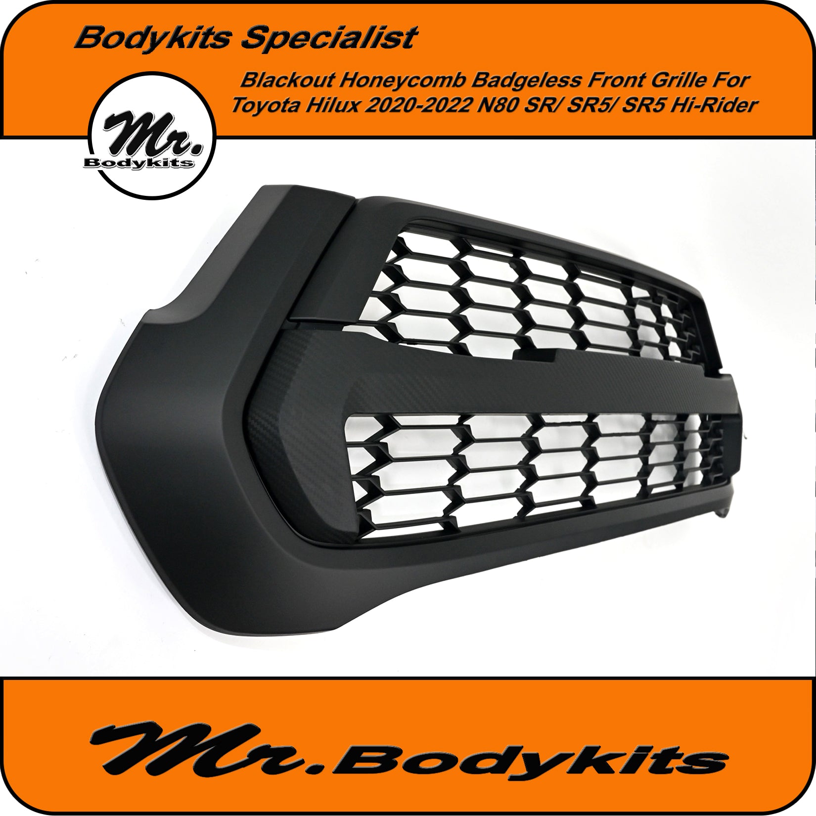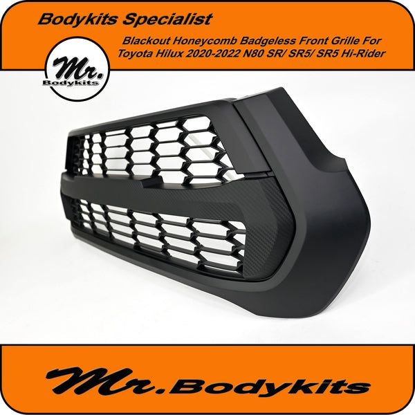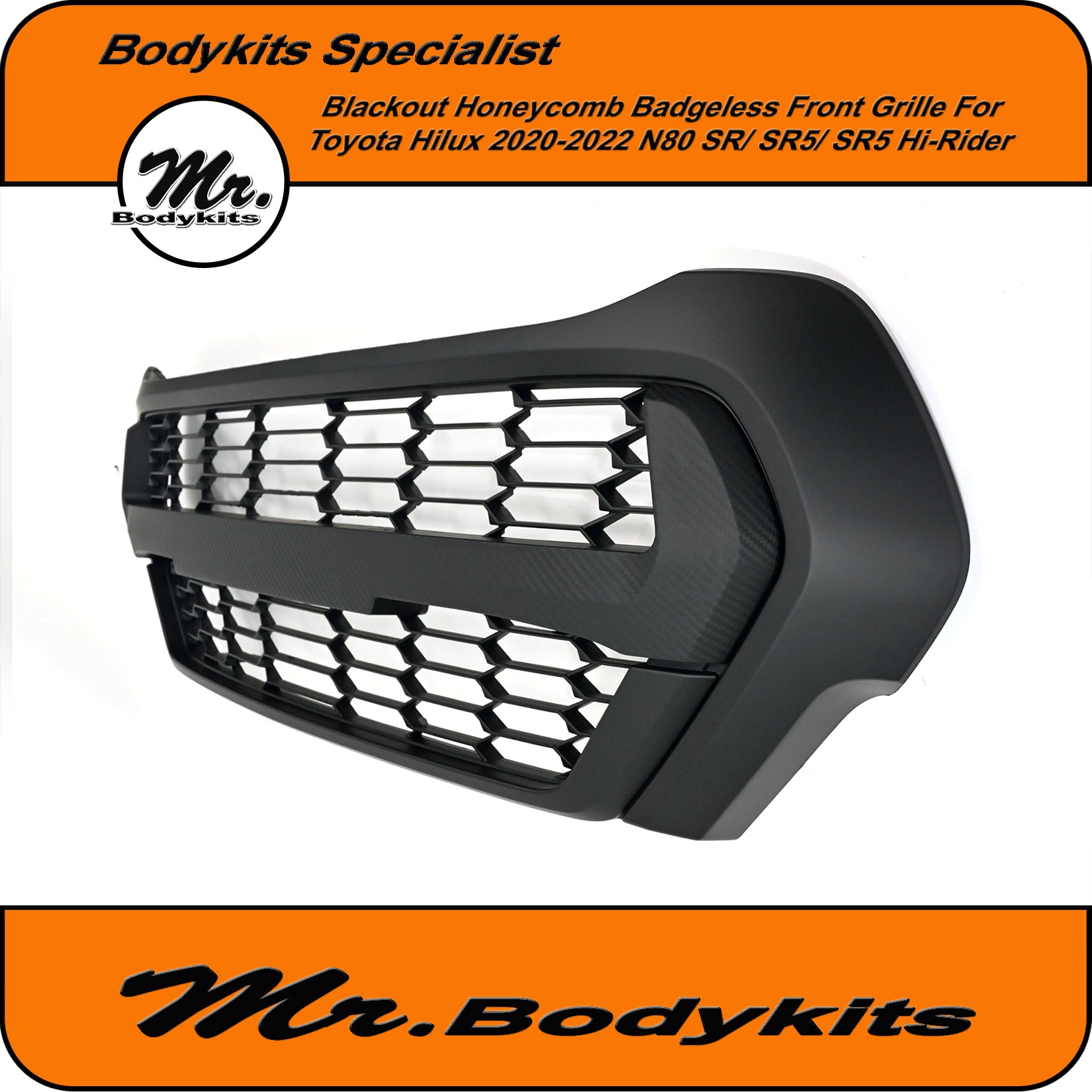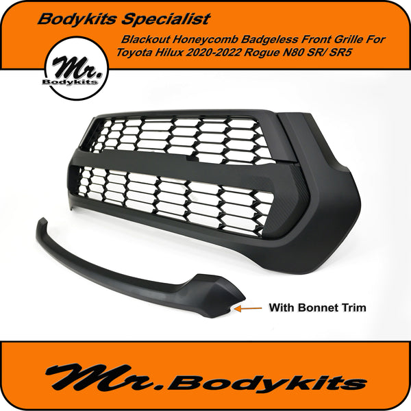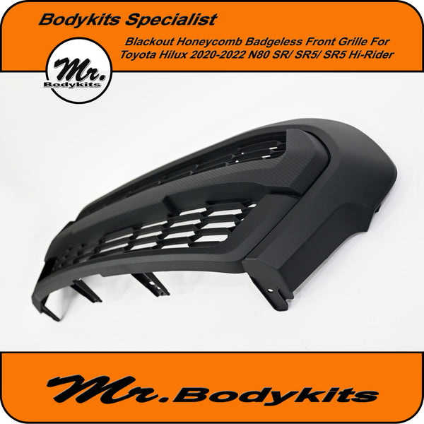 Blackout Badgeless Honeycomb Front Grille with bonnet trim – Toyota Hilux SR/SR5 N80 (06/2020–2022)