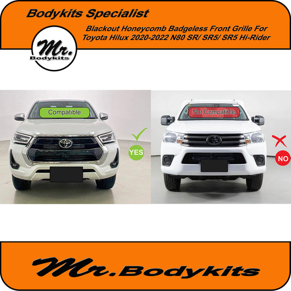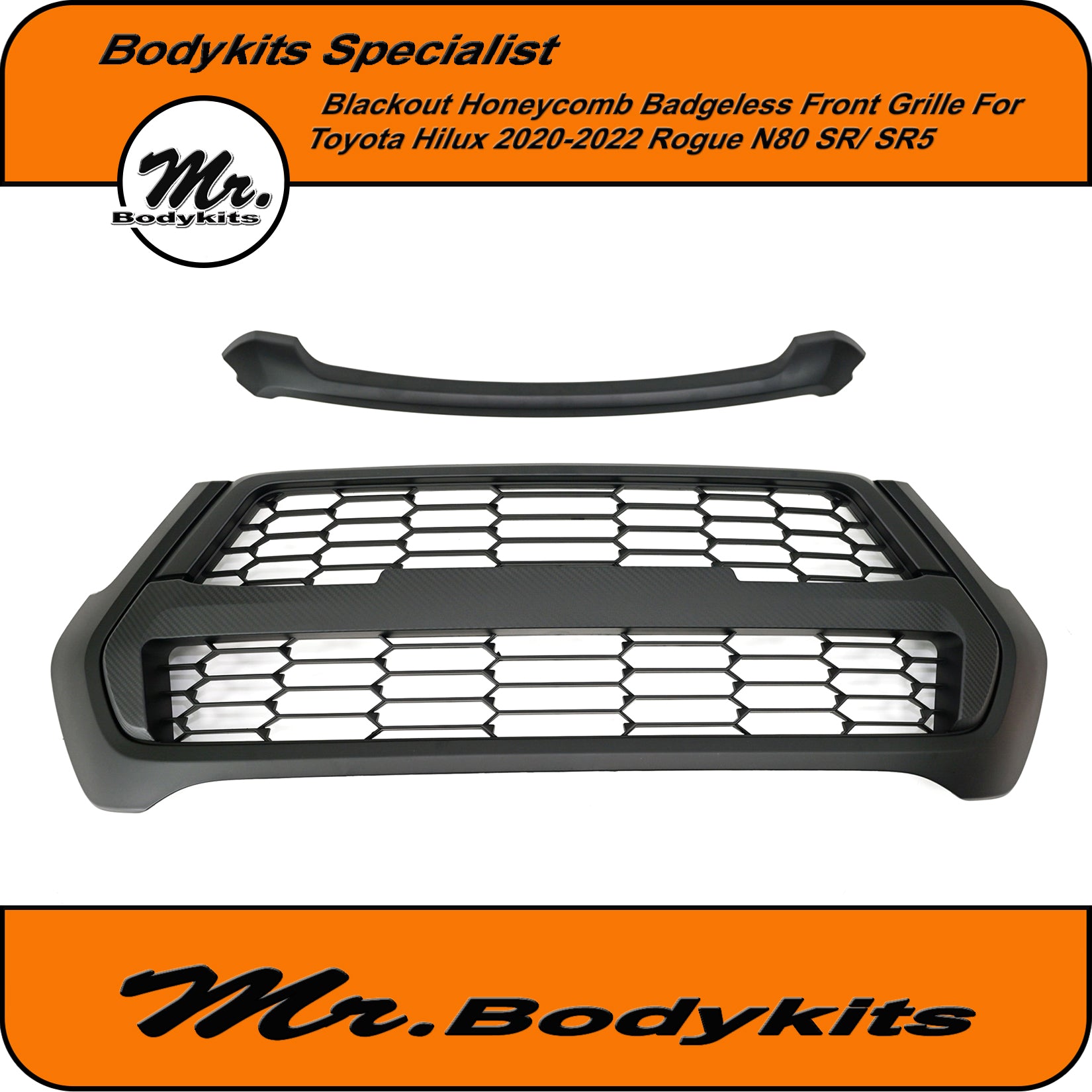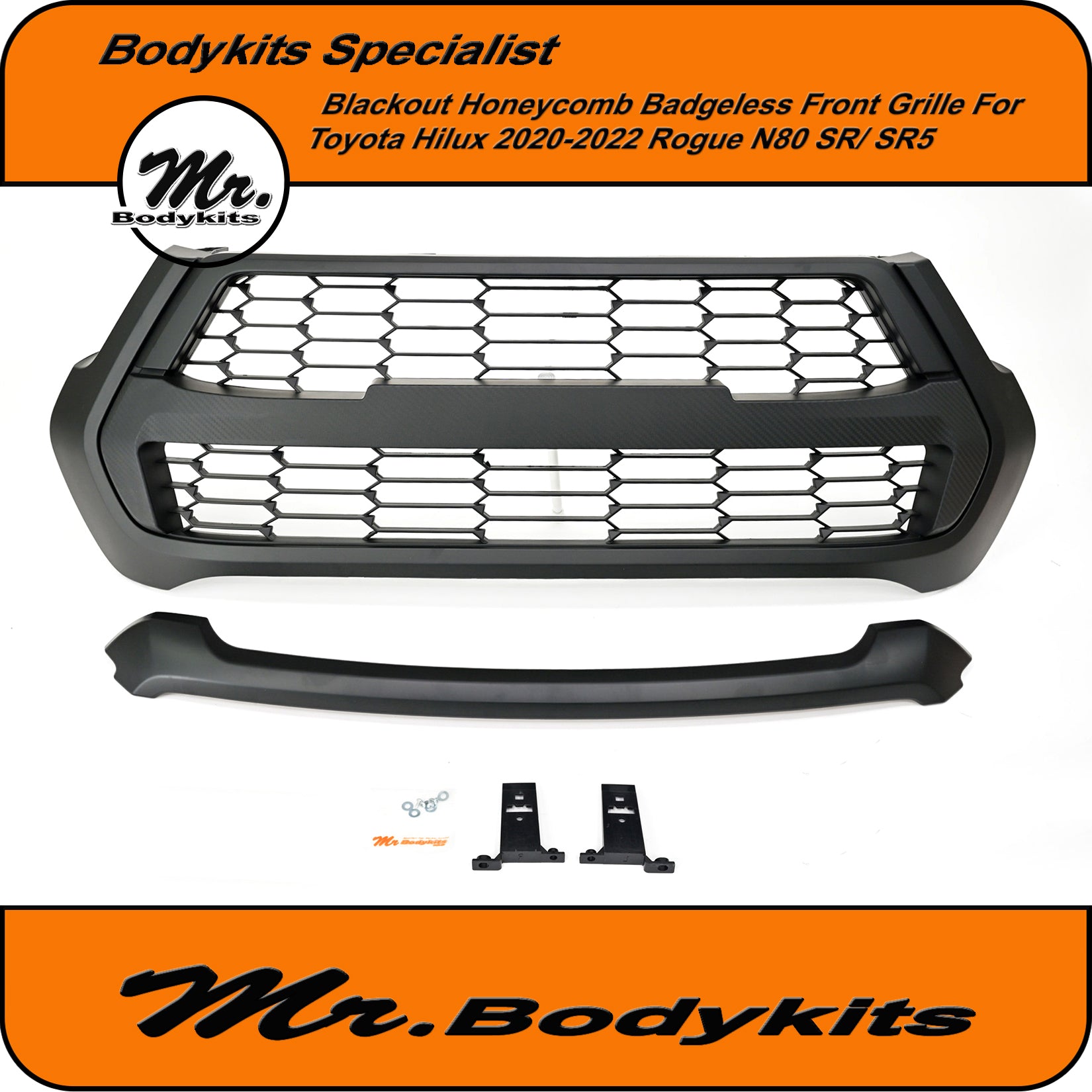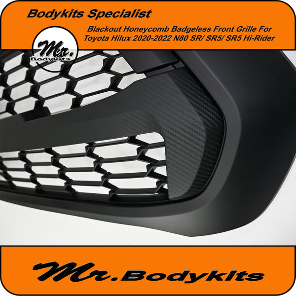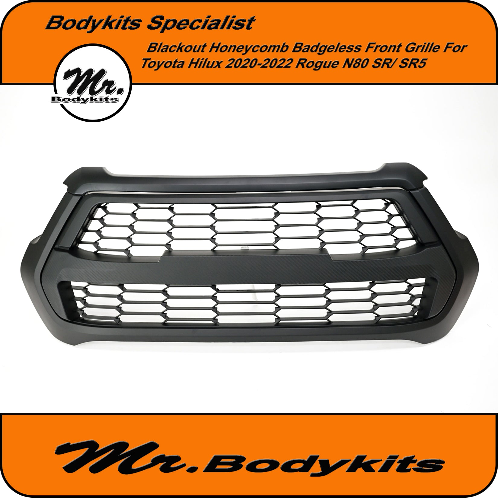 Blackout Badgeless Honeycomb Front Grille with bonnet trim – Toyota Hilux SR/SR5 N80 (06/2020–2022)