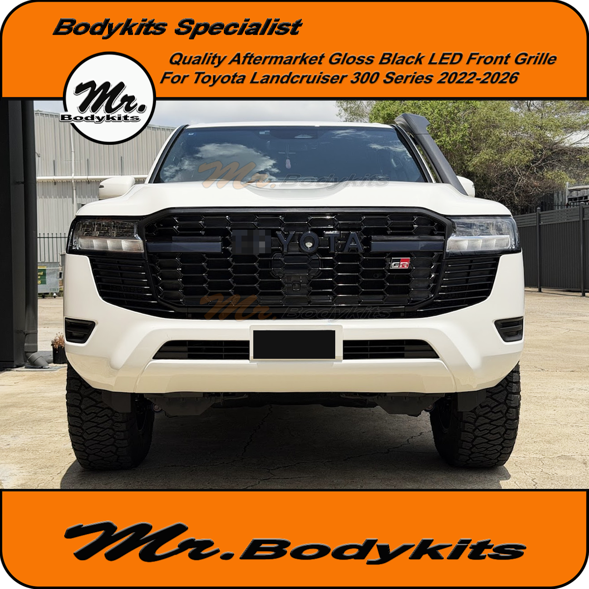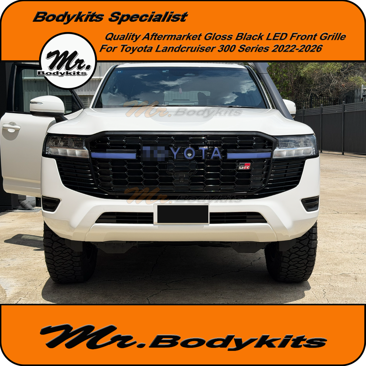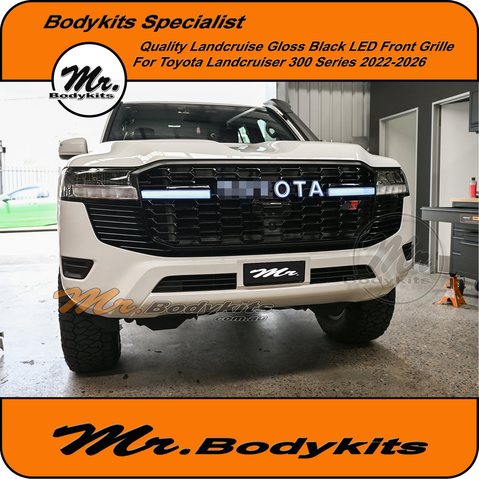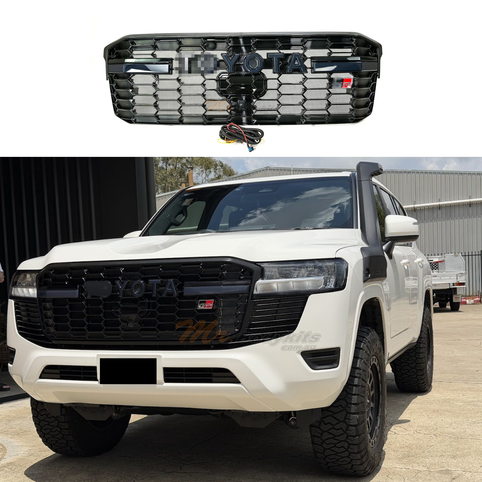 Give your LandCruiser 300 Series a bold front-end transformation with this blackout replacement grille featuring integrated LED accents. Designed to suit all LC300 variants, this grille adds a sharp, modern edge to your vehicle’s appearance.