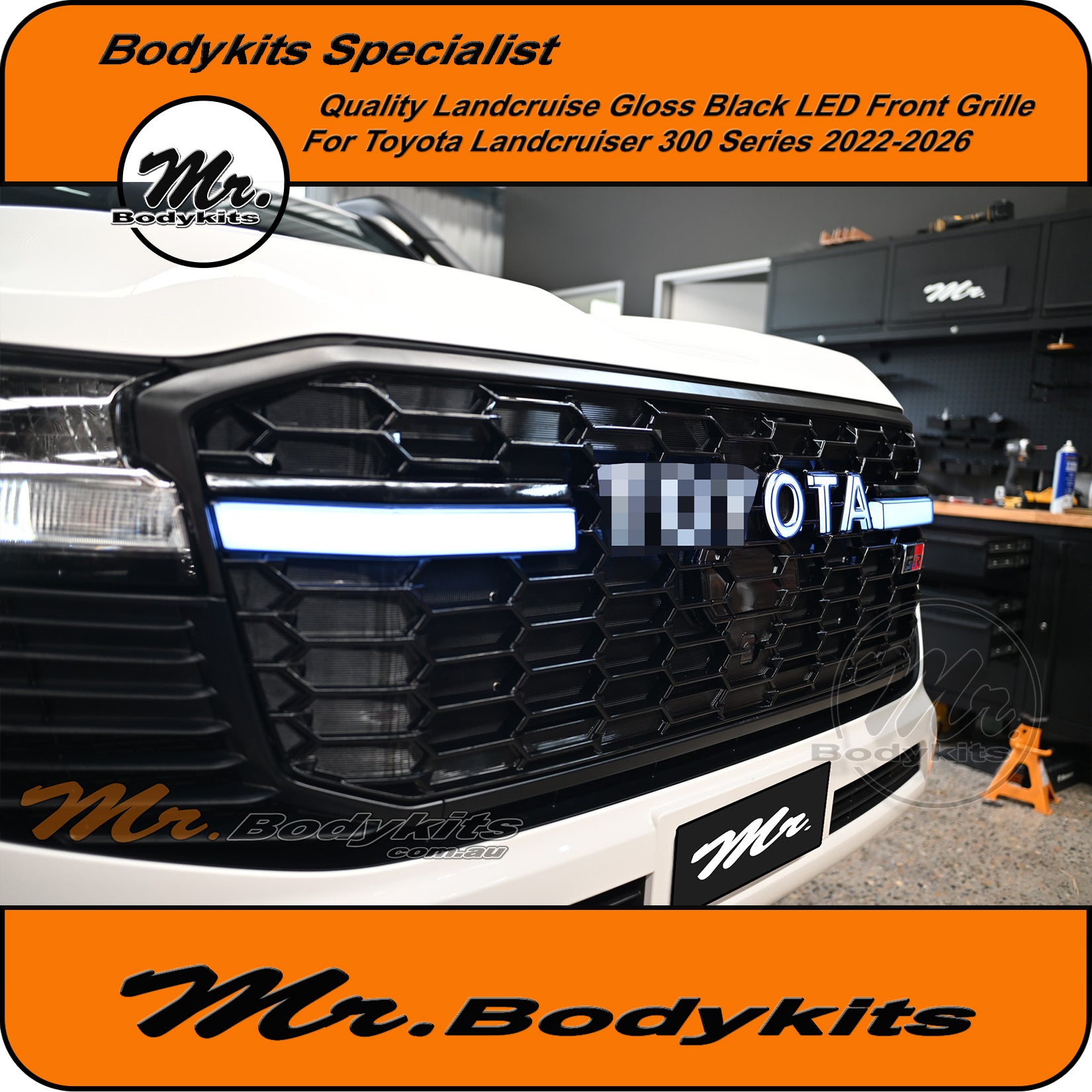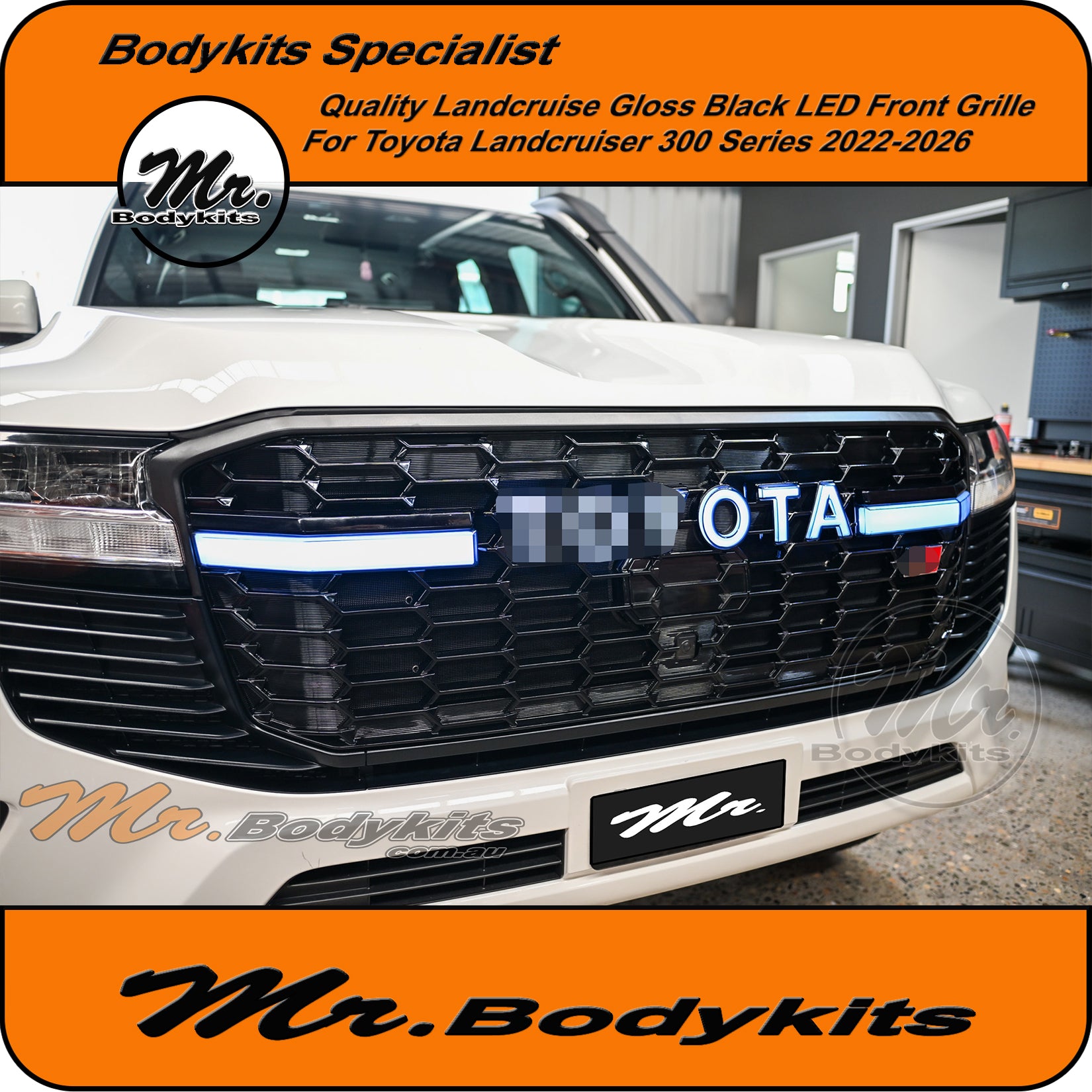 Black-Out Front Grille with LED Panel for Toyota LandCruiser 300 Series (2022–2026)