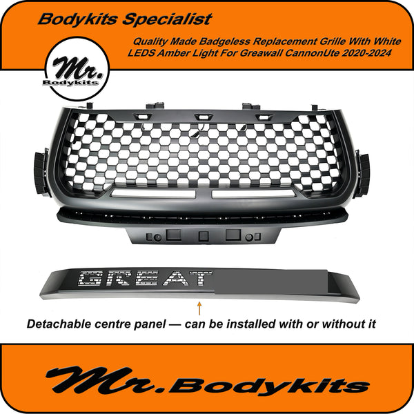 Transform the front end of your GWM Canon with this bold, badgeless grille upgrade, designed to deliver a cleaner and more aggressive road presence. Finished in sleek satin black with a modern mesh comb pattern, this grille is built to suit 2020–2024 GWM Cannon, Cannon-L and Cannon-X models.