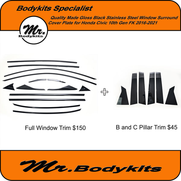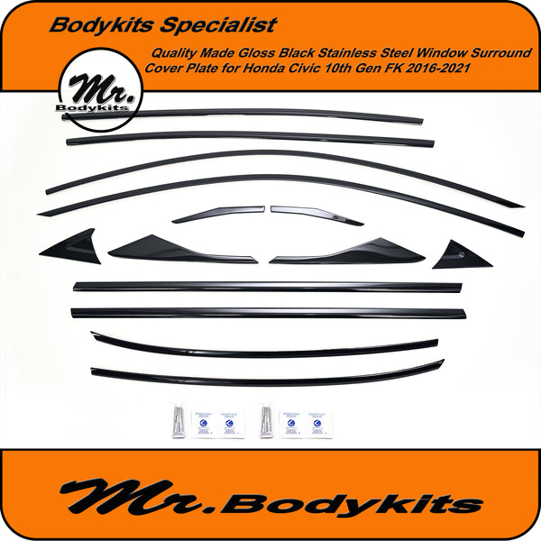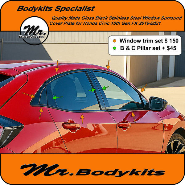 Add bold styling and a refined blackout look to your Civic Hatch with this gloss black stainless steel window trim kit. Whether you're updating tired rubber mouldings, covering factory chrome, or simply giving your FK Civic Hatch a visual upgrade, this 14-piece kit delivers a clean, modern finish with minimal effort.