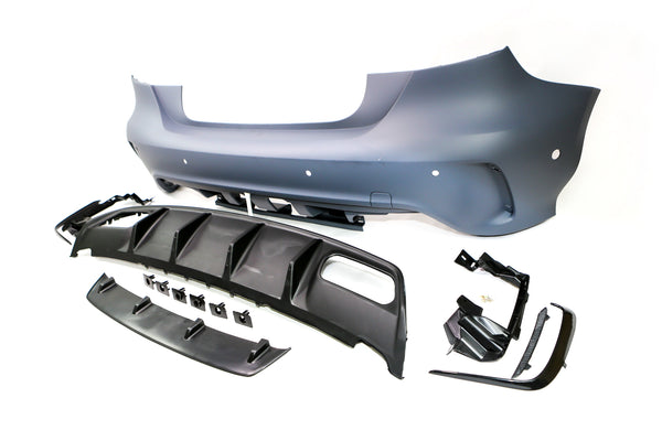 - Full set with main bumper skin/ rear diffuser/ rear lip/ canard blade/ parking sensor, This bumper is made with parking sensors holes.