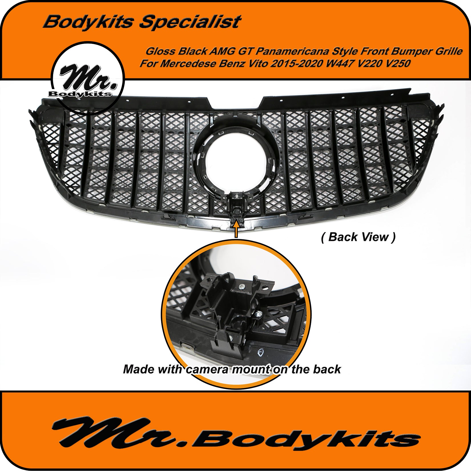 AMG GT Panamericana style replacement front bumper grille for Mercedes Benz Vitovan 2015-2020 W447