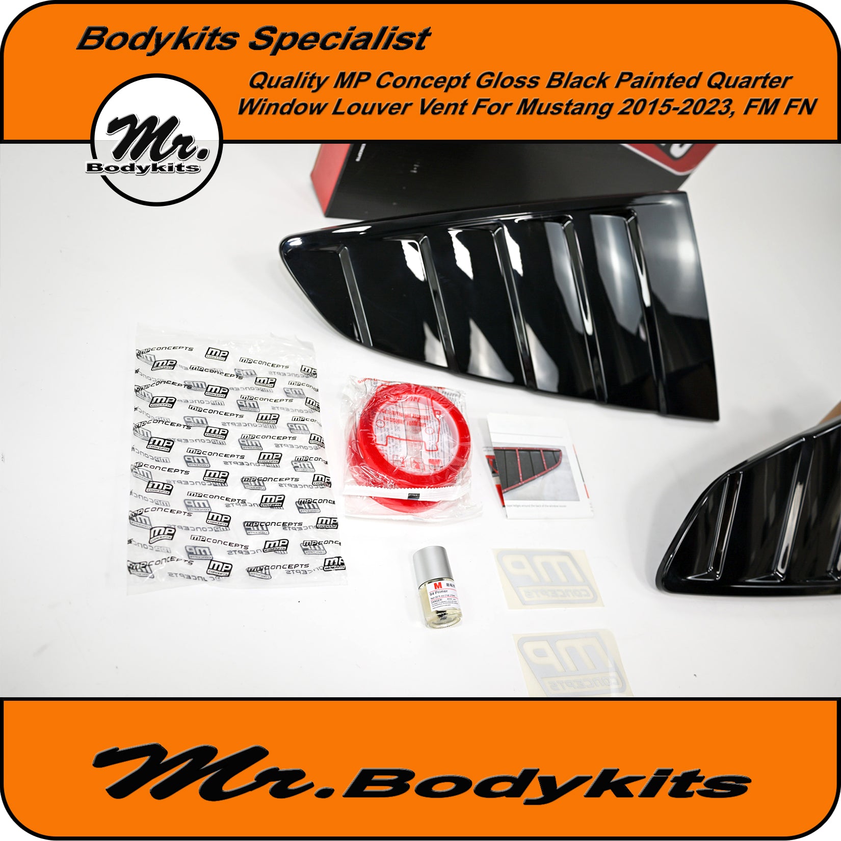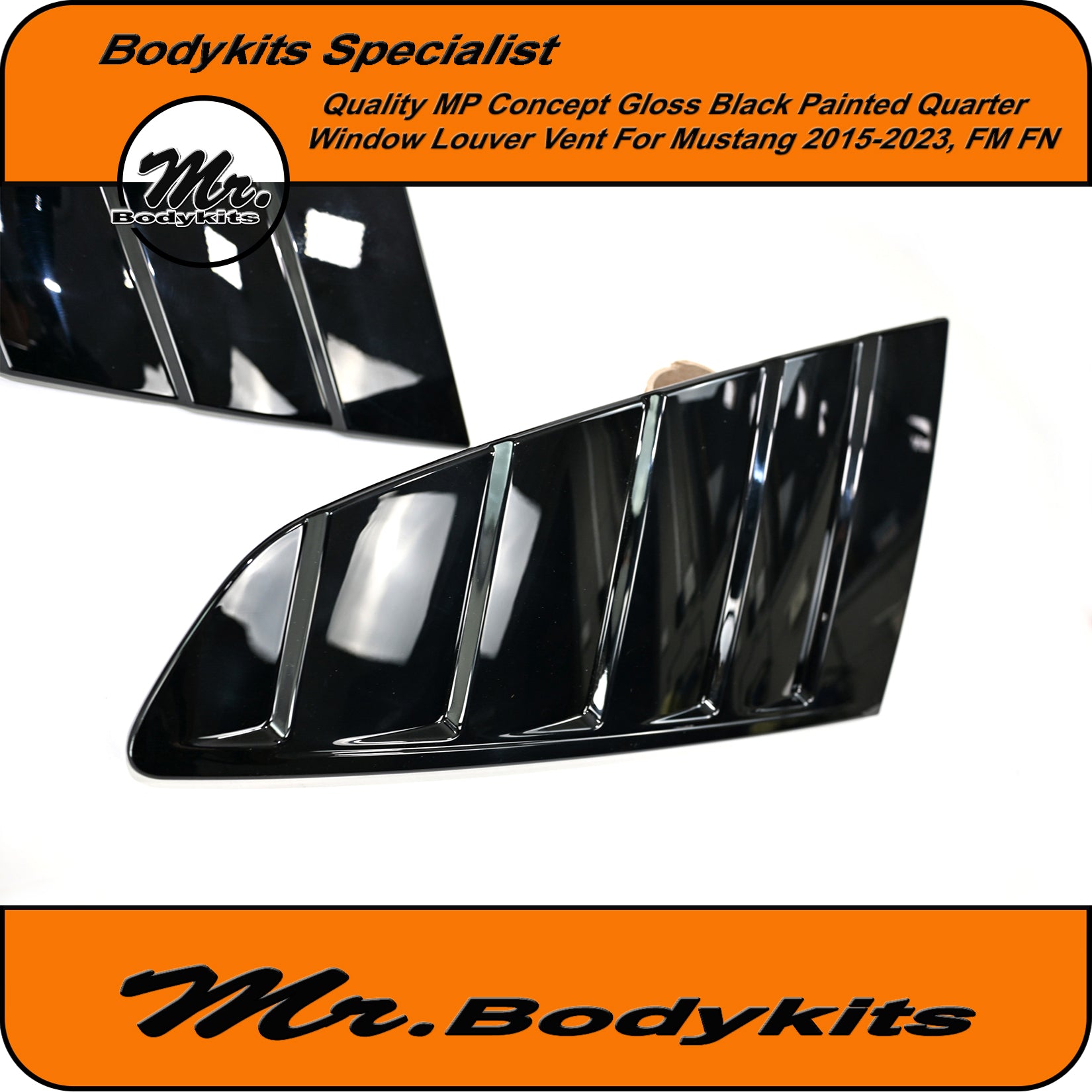 Add a bold, track-inspired aesthetic to your Mustang with these gloss black MP Concepts quarter window louvres. Designed specifically for the FN and FM series (GT & EcoBoost), these vents deliver a sharp visual upgrade that captures the essence of performance styling.