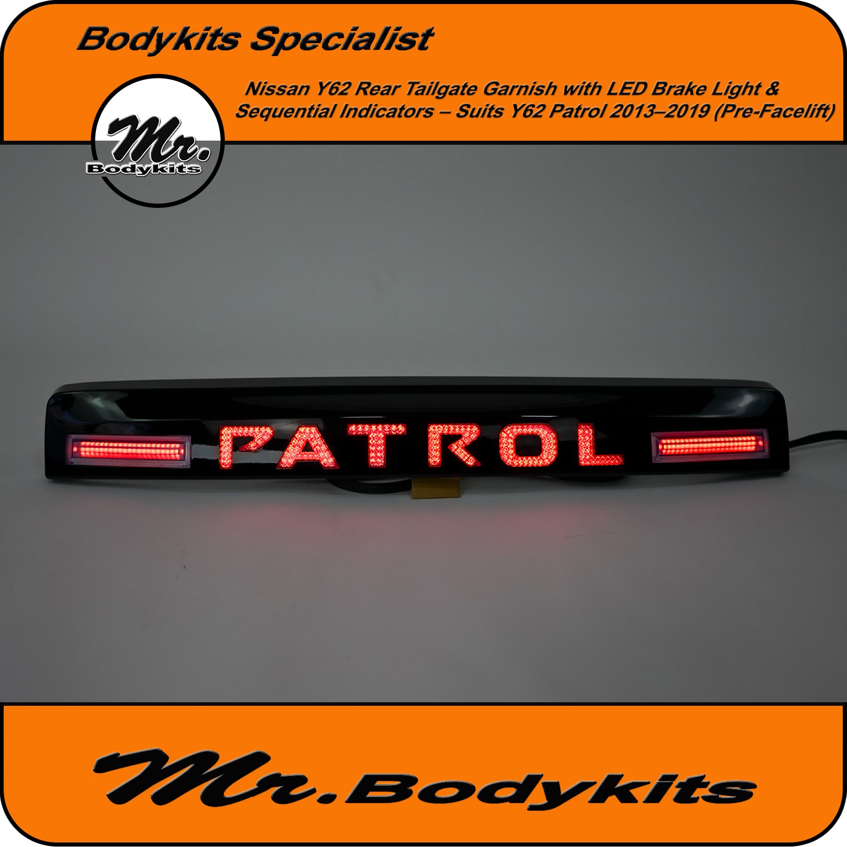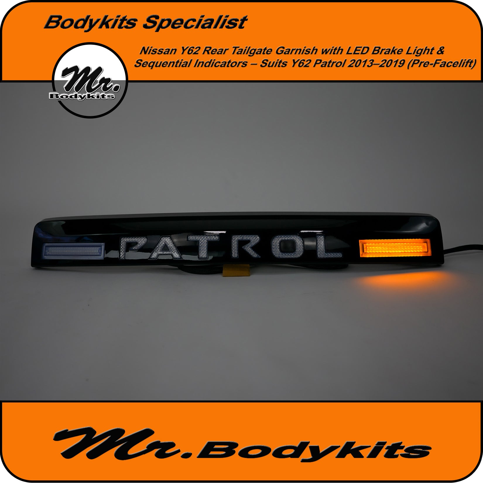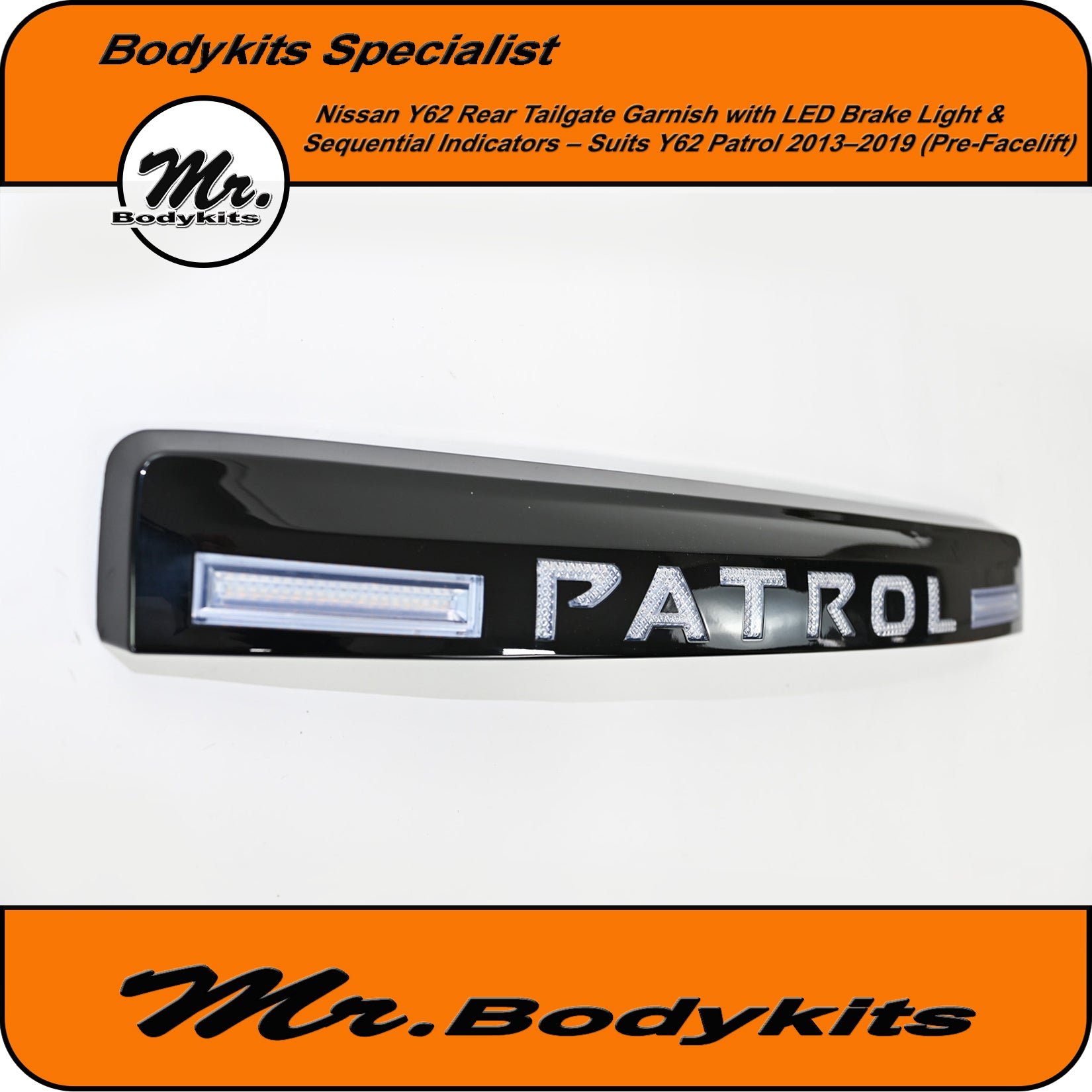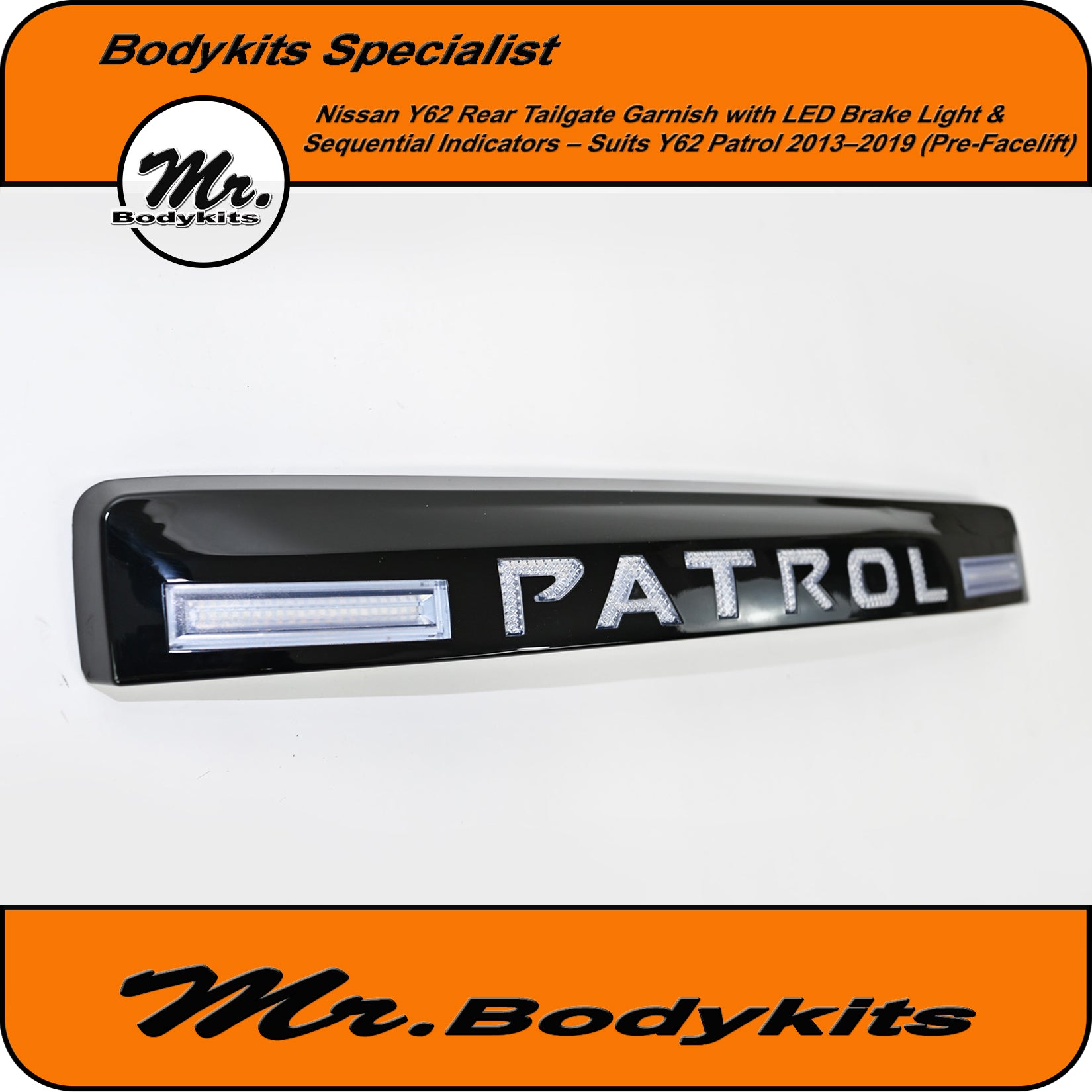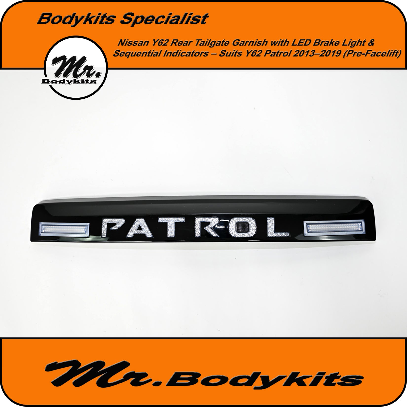 Whether you're upgrading for looks, visibility, or both, this tailgate garnish delivers a sharp and distinctive rear-end appearance that makes your Patrol stand out.