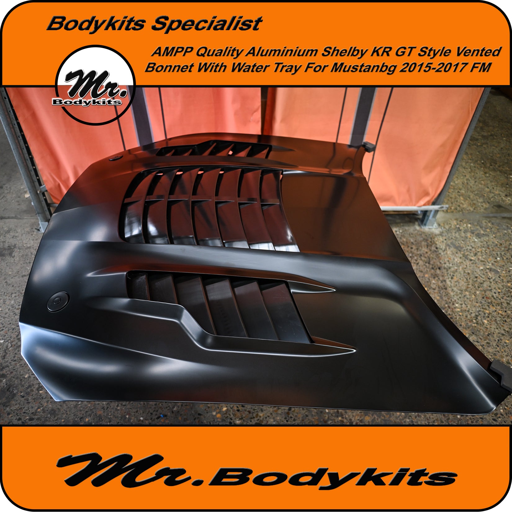 Add aggressive styling and functional performance to your Mustang FM with this AMPP KR GT500-inspired aluminium replacement bonnet. Designed to turn heads and manage heat, this vented bonnet is the ideal upgrade for your 2015–2017 Ford Mustang 2-door coupe and convertible.