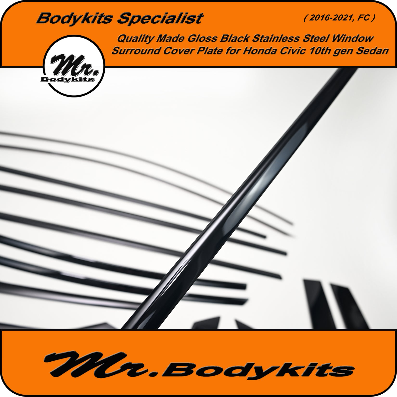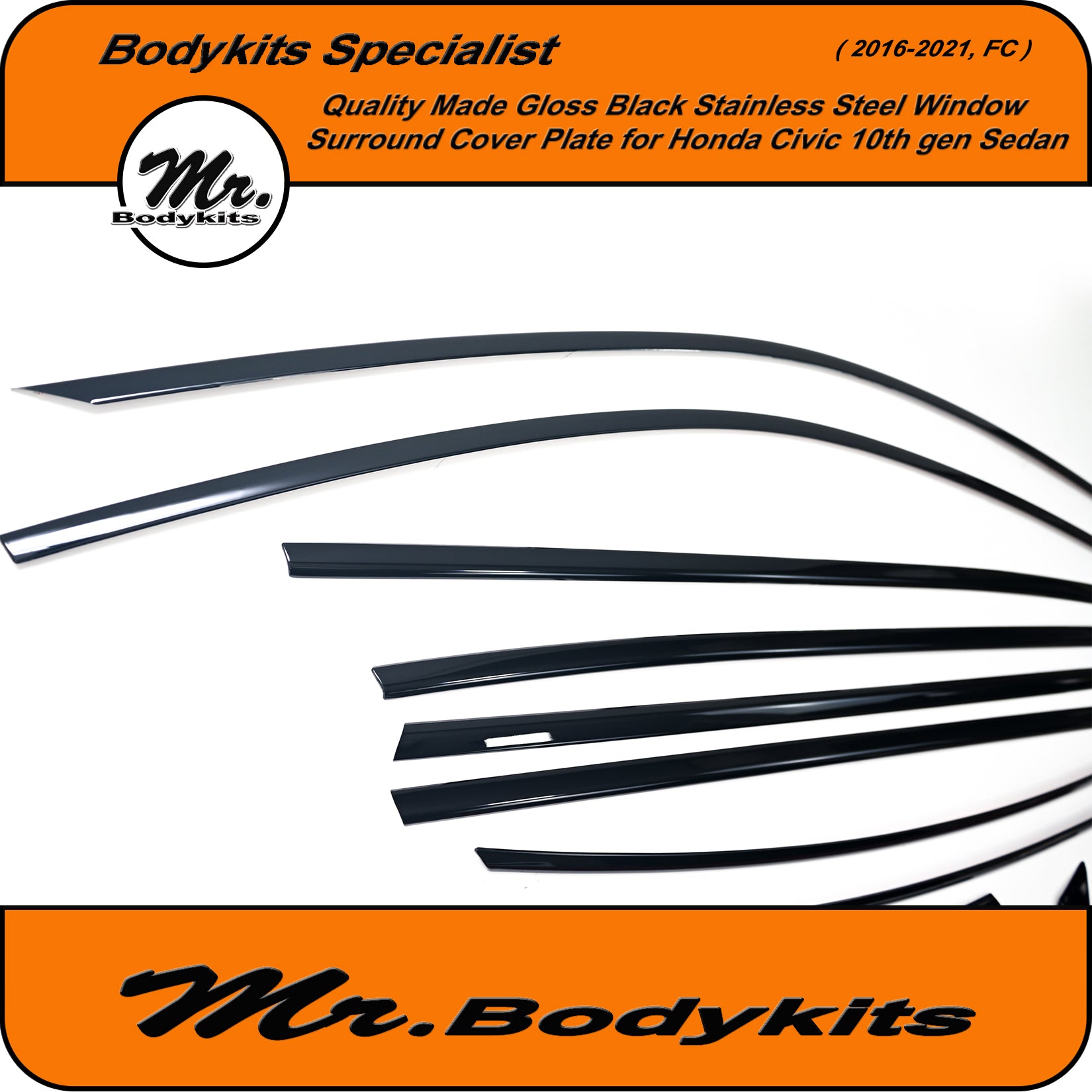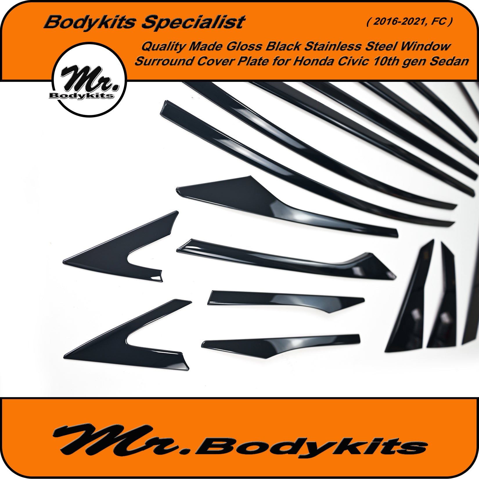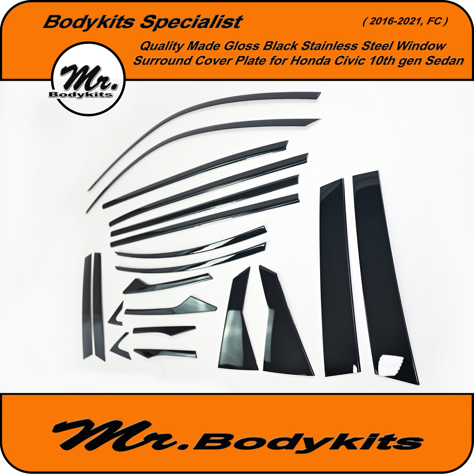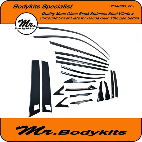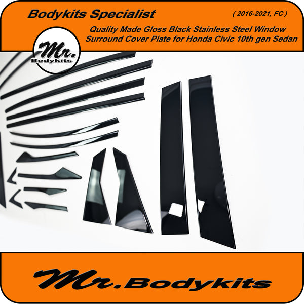 Give your Civic FC Sedan a clean, modern edge with this gloss black window trim cover plate set. This full 20-piece overlay kit is designed to cover the factory chrome window trims, offering a stealthy blackout finish that elevates your vehicle's side profile.