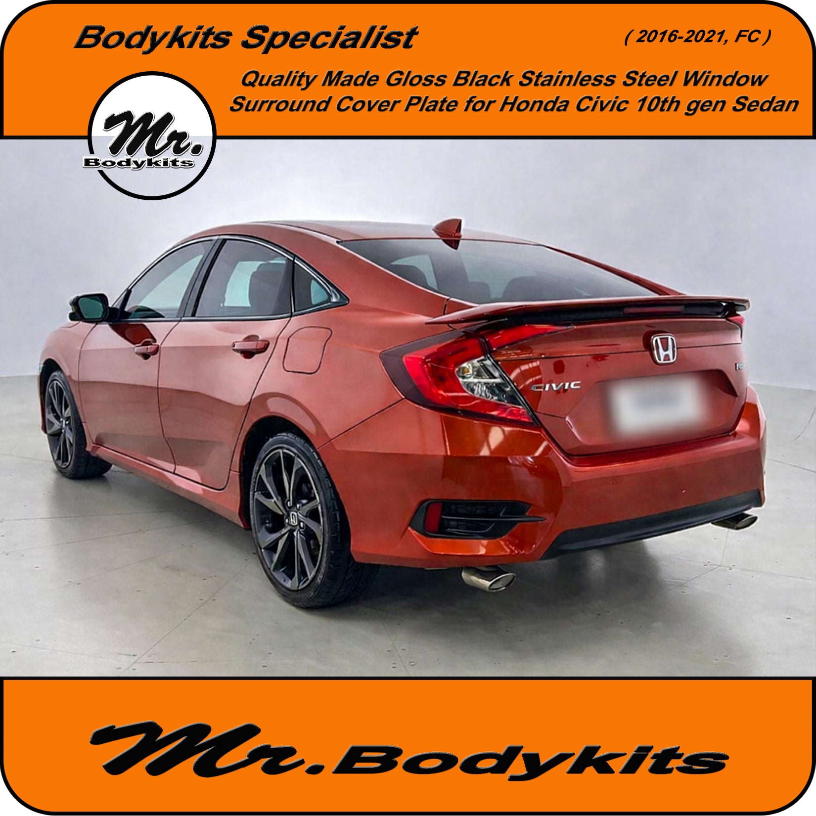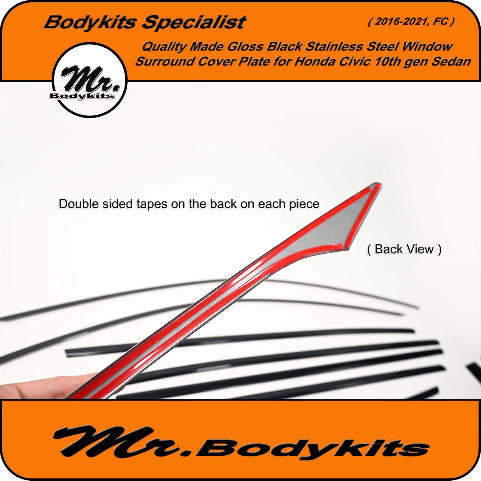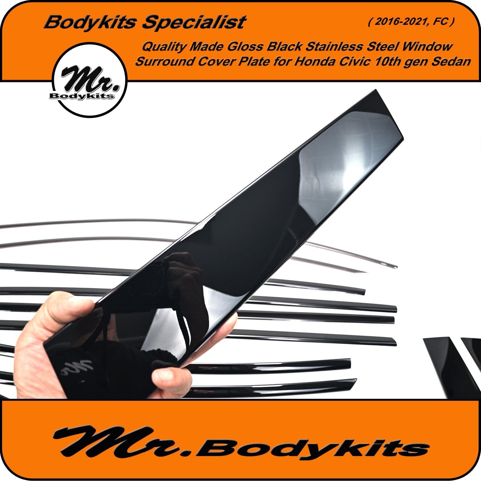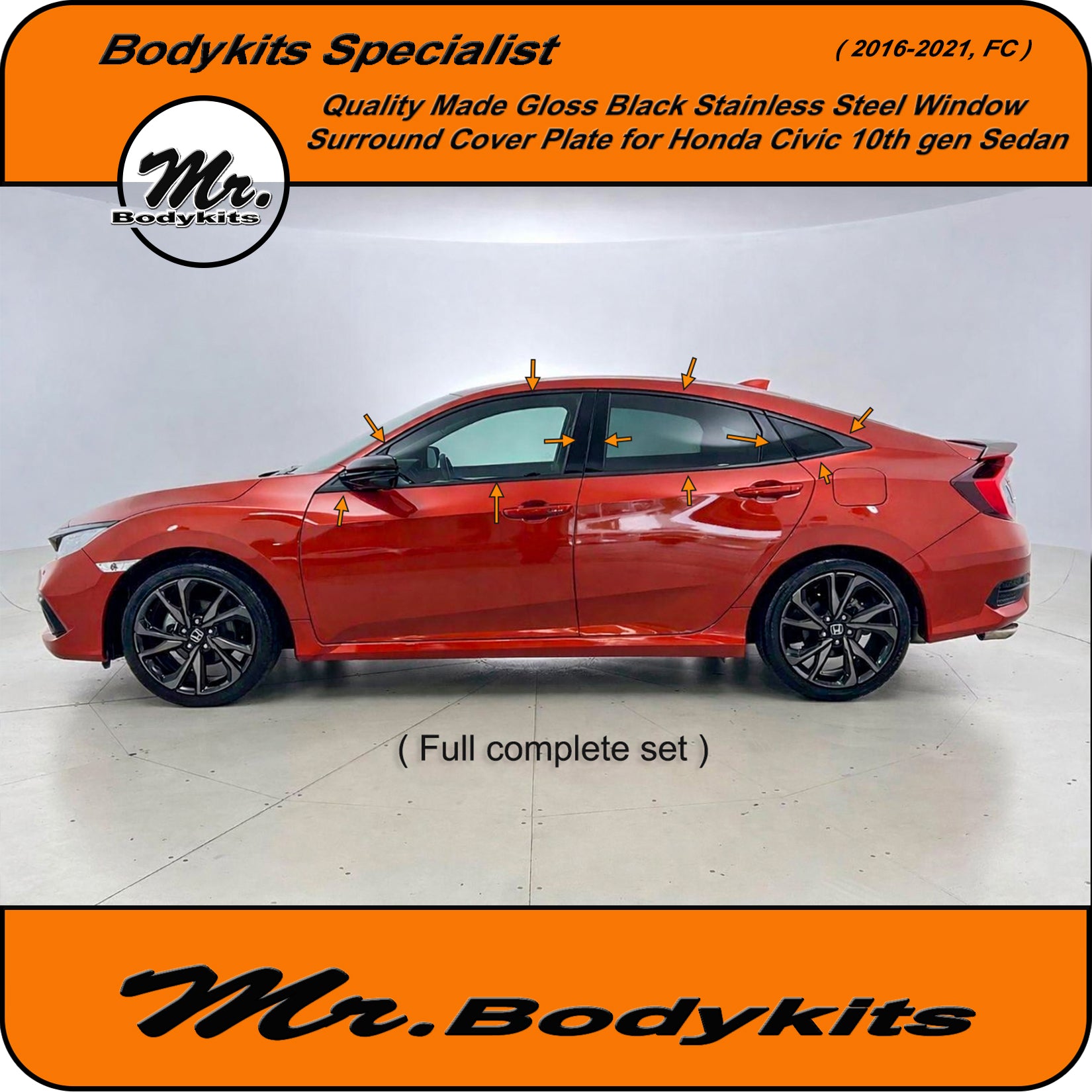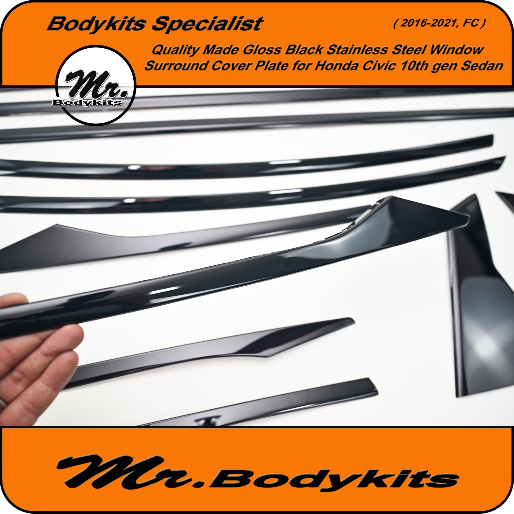 Give your Civic FC Sedan a clean, modern edge with this gloss black window trim cover plate set. This full 20-piece overlay kit is designed to cover the factory chrome window trims, offering a stealthy blackout finish that elevates your vehicle's side profile.
