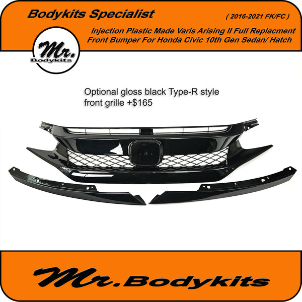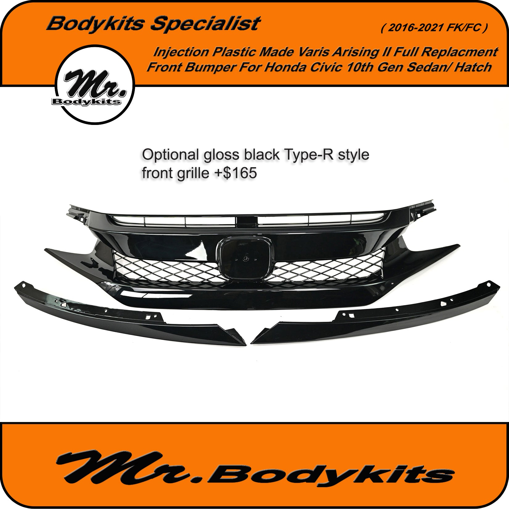Varis Style Front Bumper – Suits Honda Civic 10th Gen 2016–2021 (VTi, VTi-S, VTi-L, VTi-LX, Luxe) | Hatch & Sedan (FK/FC)
