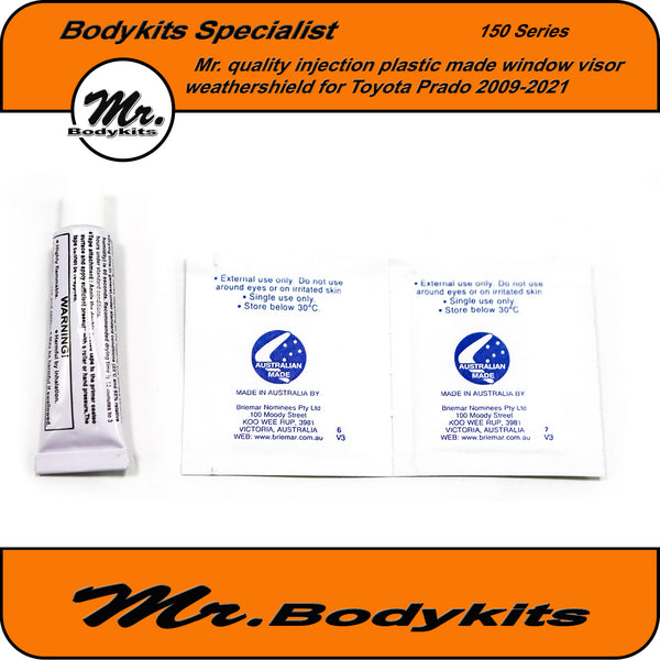 - Includes: Full front and rear set window visor with genuine 3M tapes on the back (model=3M™ VHB™ Tape 5952), 1x 3M K-520 primer adhesion promoter, 2x Alcohol prep pads.