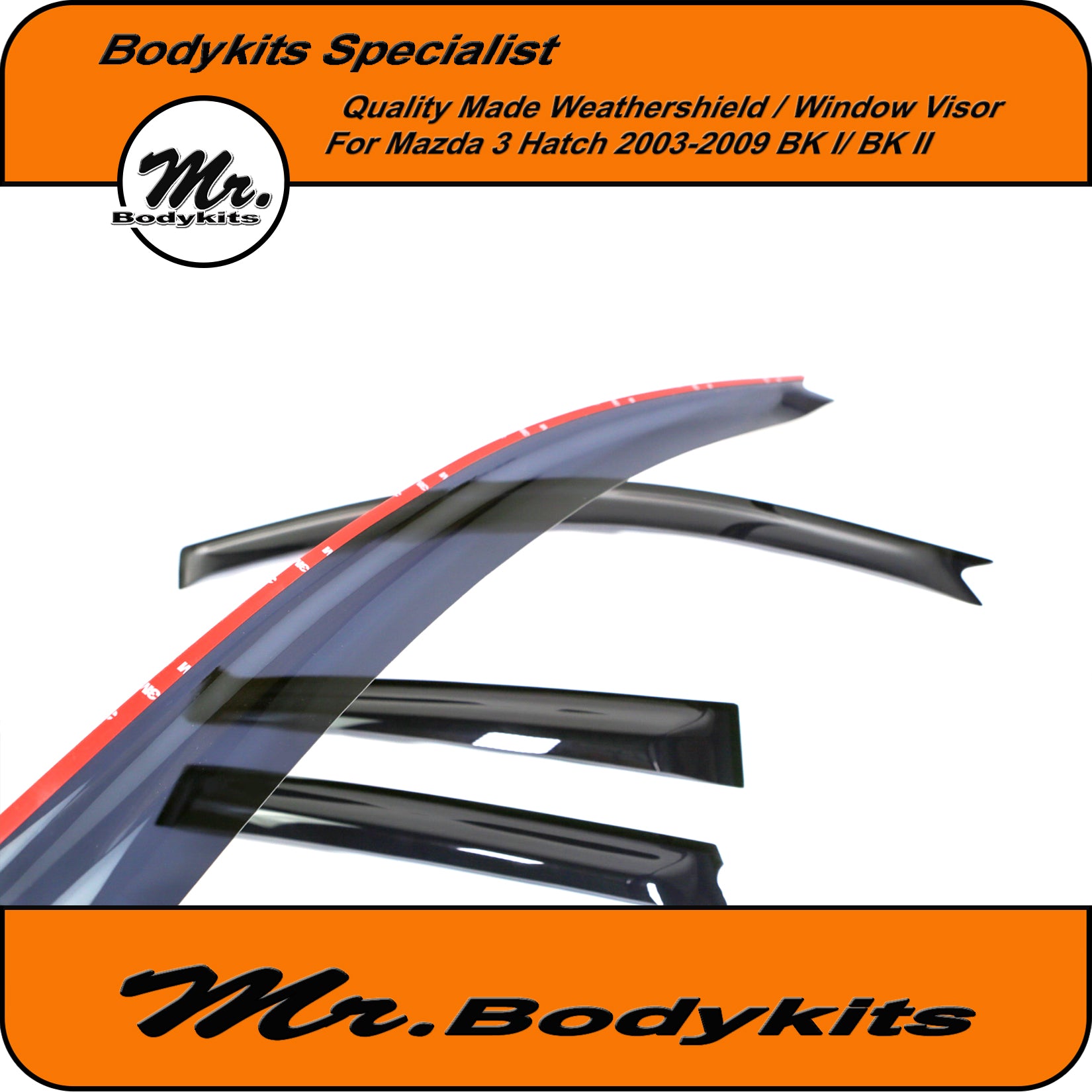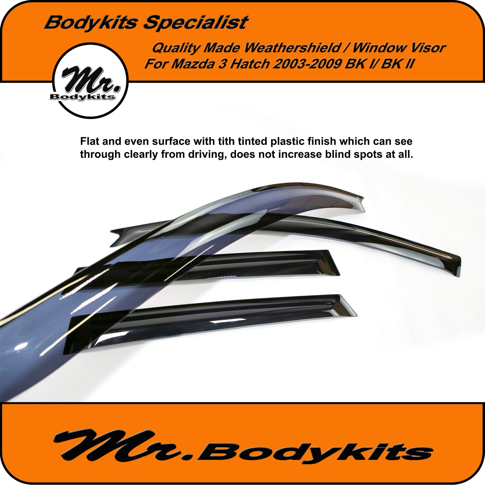 Suits - Set of 4 ( front and rear window visors ) Fits all Mazda 3 hatch 2003-2009 BK I/ BKII series ~ Maxx/ MPS/ Neo/ SP23/ MZR