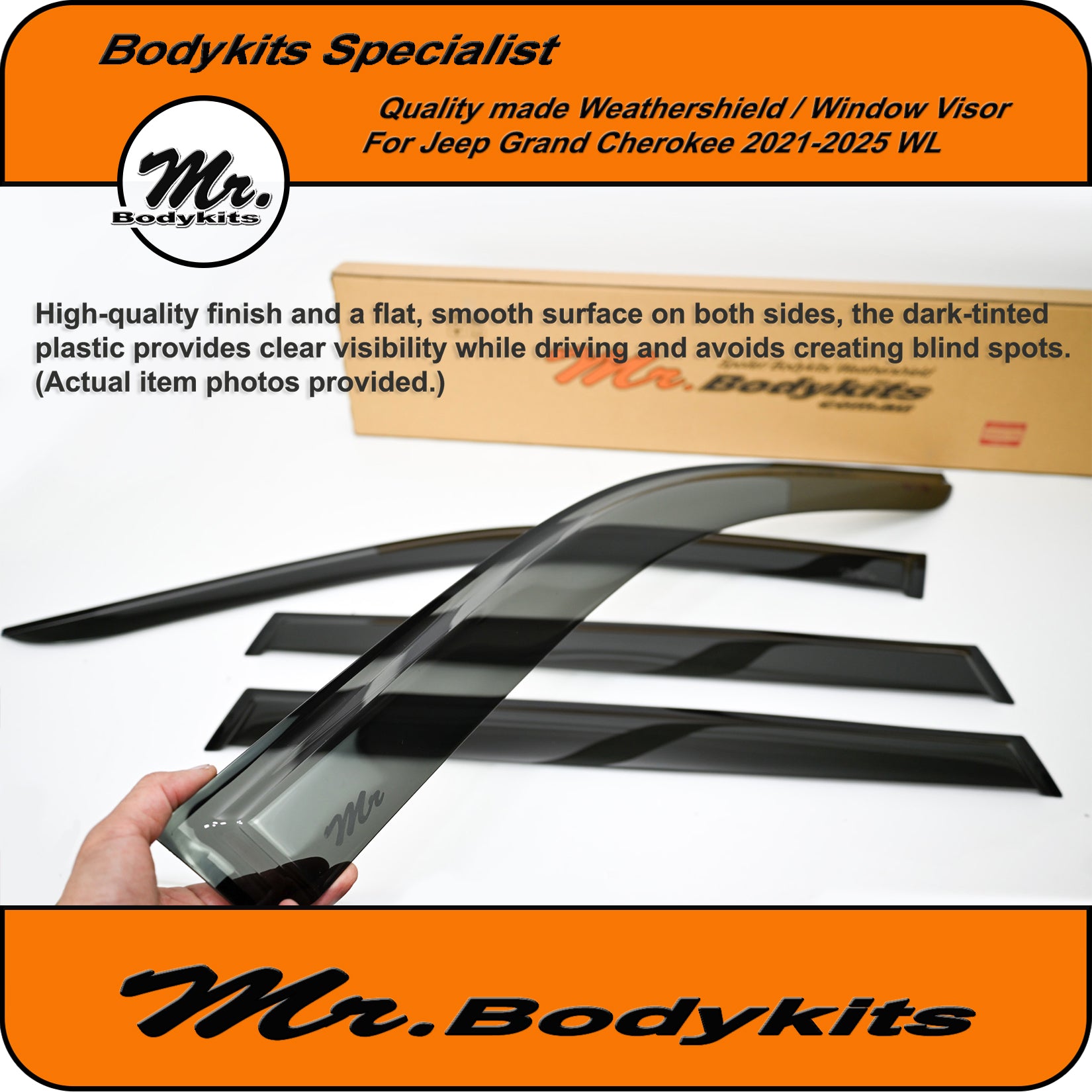 Quality-made weather shield/ window visor for Jeep Grand Cherokee 2021-2025 WL series.