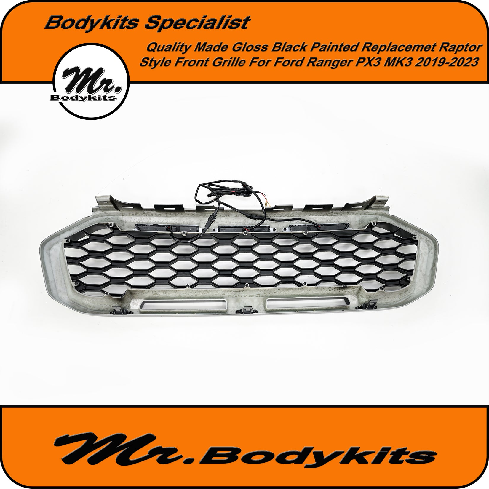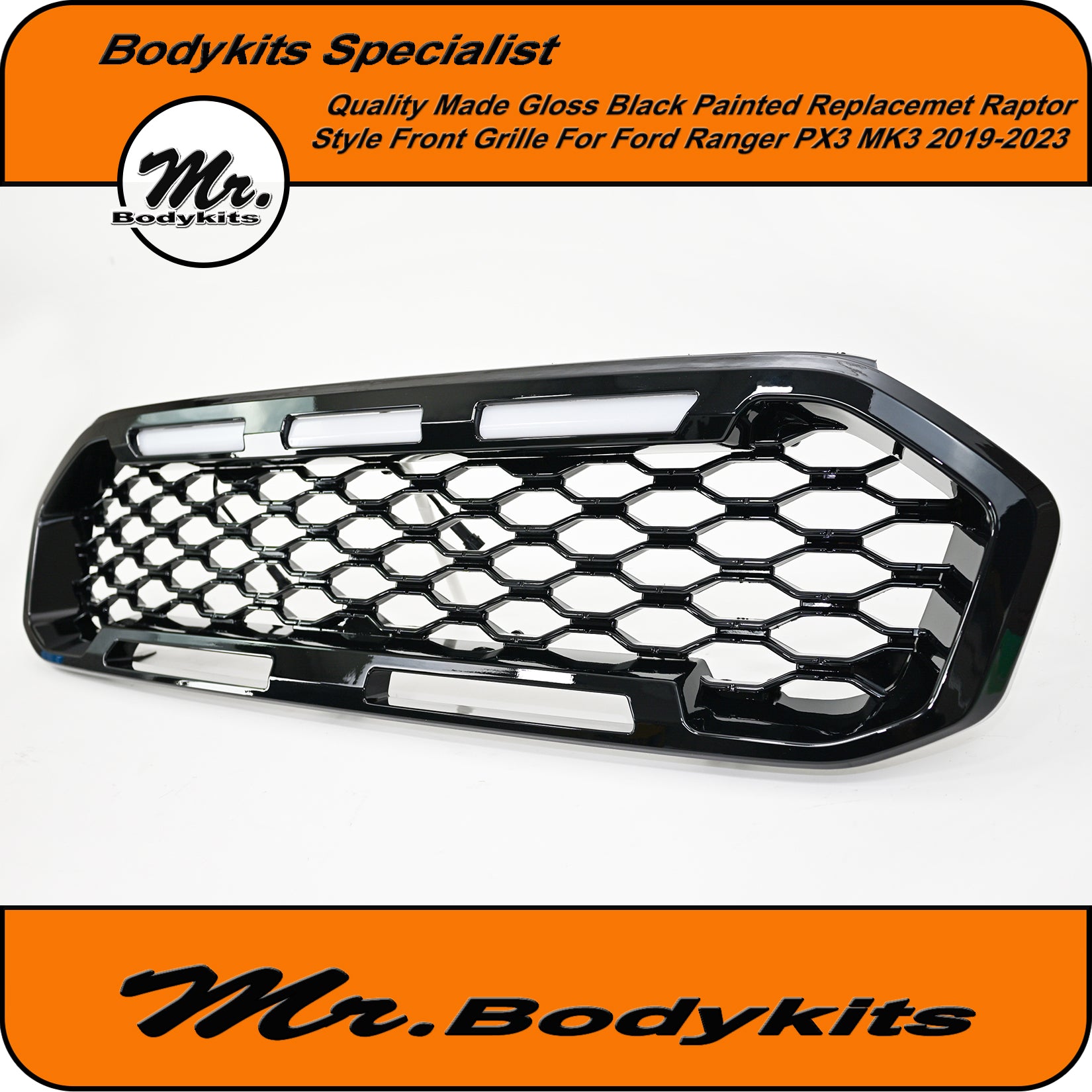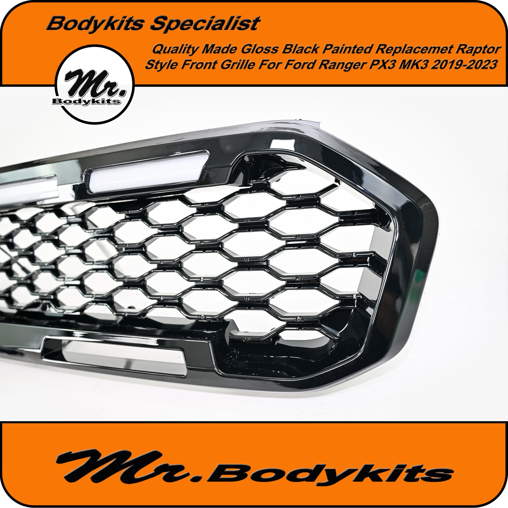 Gloss Black Badgeless Honeycomb Front Grille – Ford Ranger 2019–2023 PX3