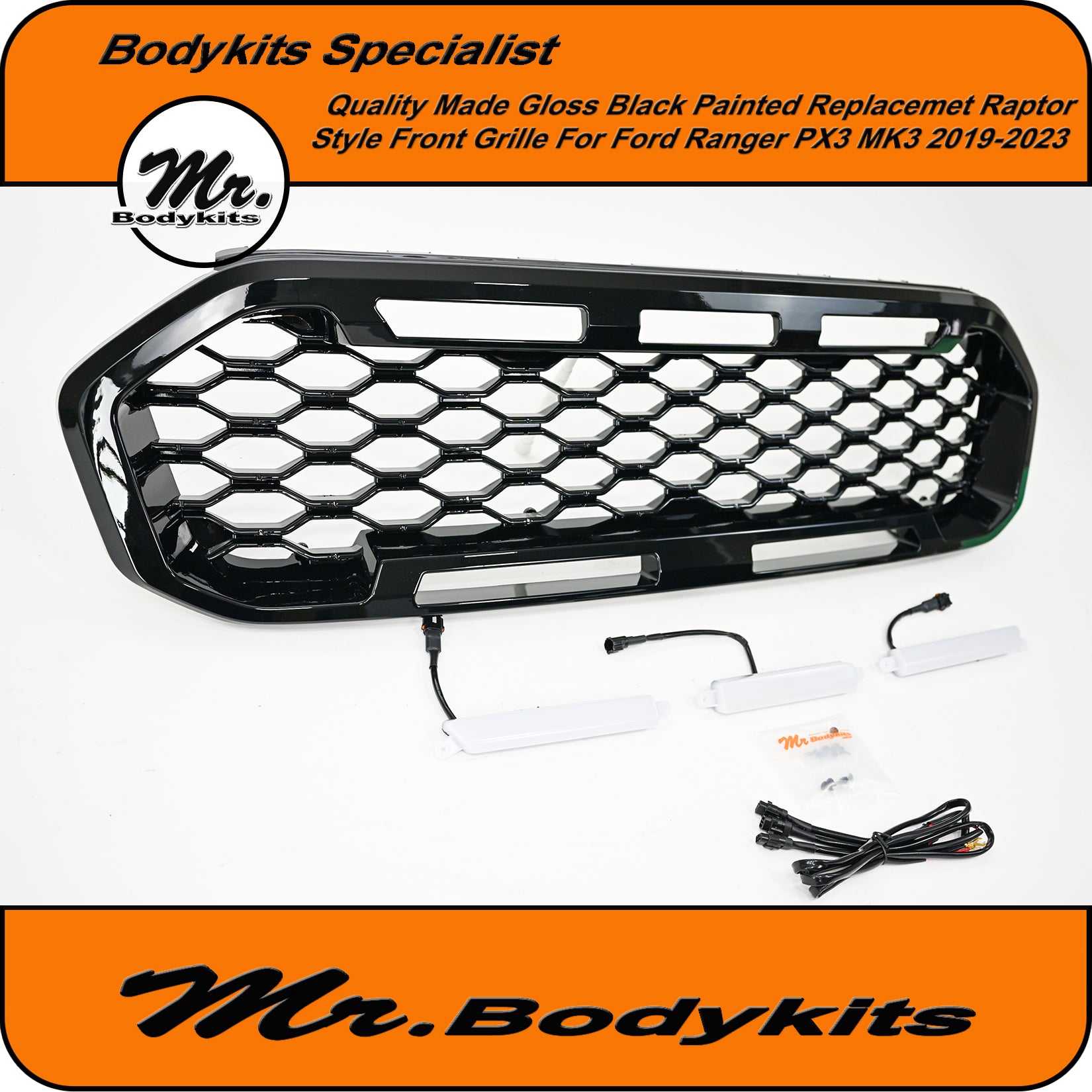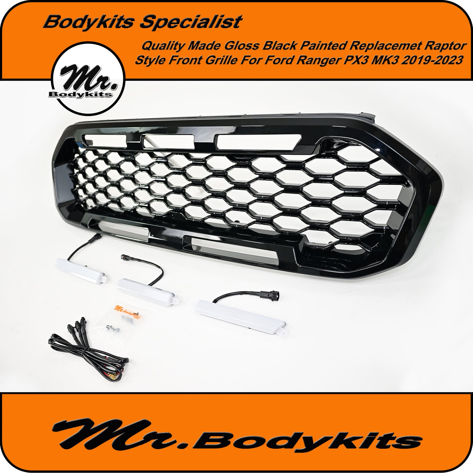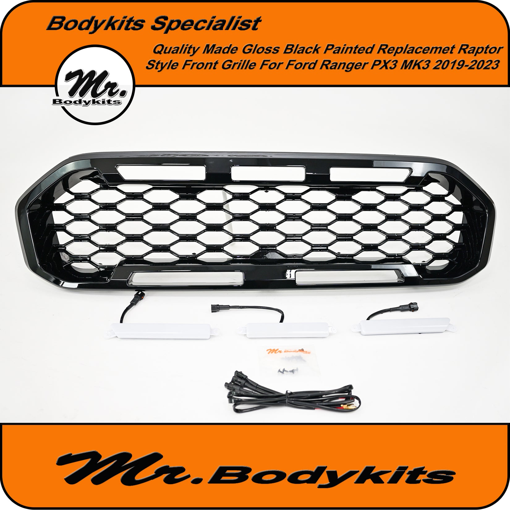 Gloss Black Badgeless Honeycomb Front Grille – Ford Ranger 2019–2023 PX3
