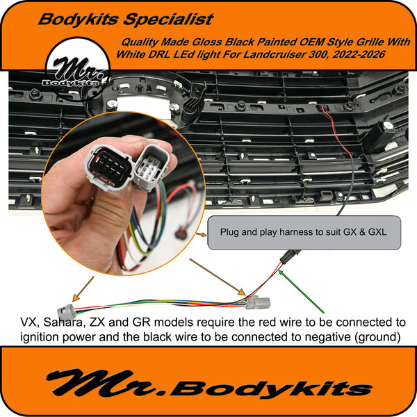 Mr Aftermarket made Black-Out Front Grille with LED DRL to suit Toyota LandCruiser 300 Series (2022–2026)