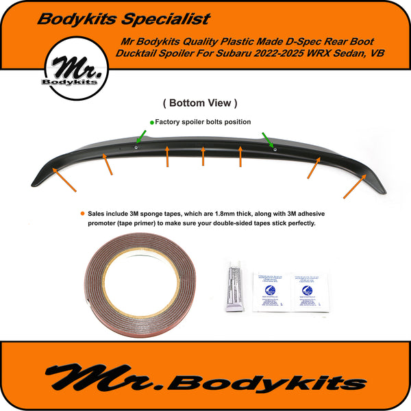 Brand new Mr Bodykit plastic-made OEM quality D-Spec V1 Rear boot ducktail spoiler for 2022-2024 Subaru WRX Sedan.