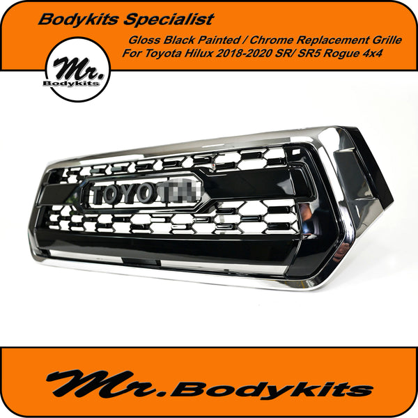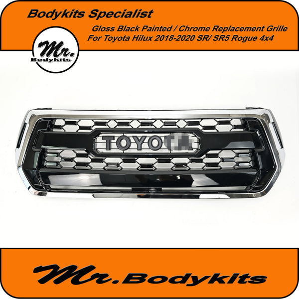 Gloss Black / Chrome Front Grille – Toyota Hilux N80 (04/2018–05/2020)