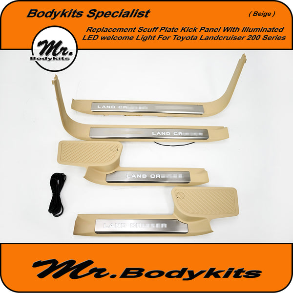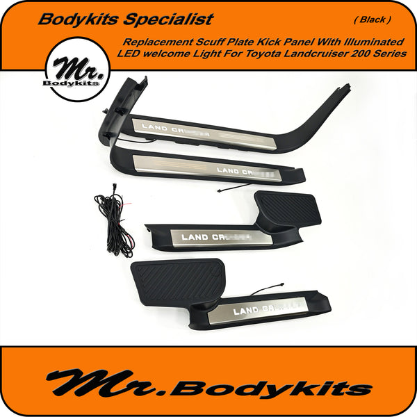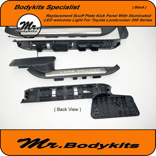 Upgrade your LandCruiser’s cabin with this sleek replacement door scuff plate set, designed to deliver a refined interior touch while protecting your door sills from everyday wear. Featuring built-in LED illuminated welcome lights, these panels offer both function and style—ideal for enhancing the entry experience.