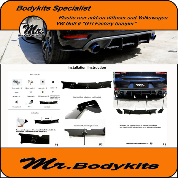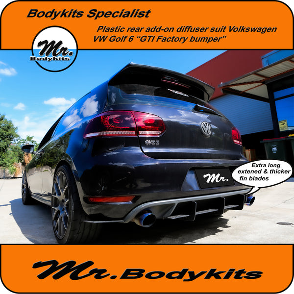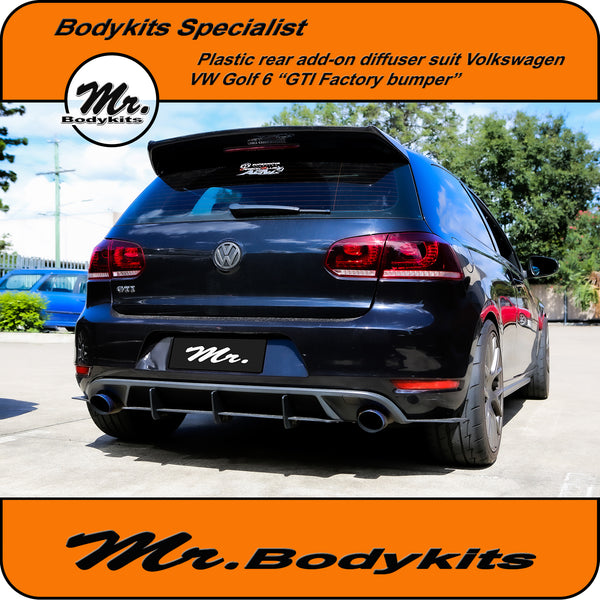 Brand new plastic made add-on rear bumper diffuser suit VW Golf 6 GTI series 3/5 door hatch.