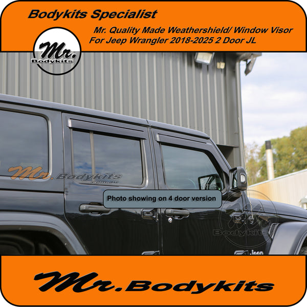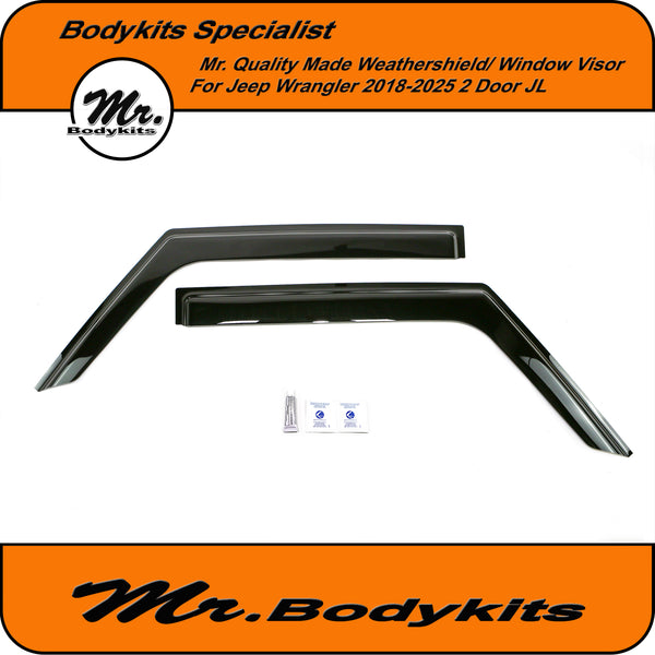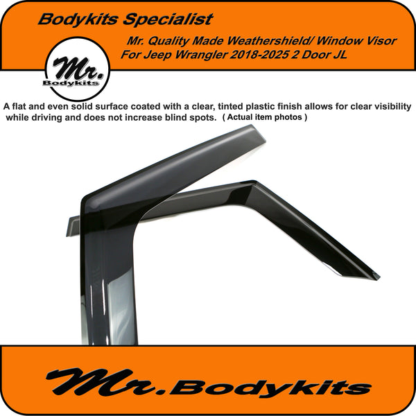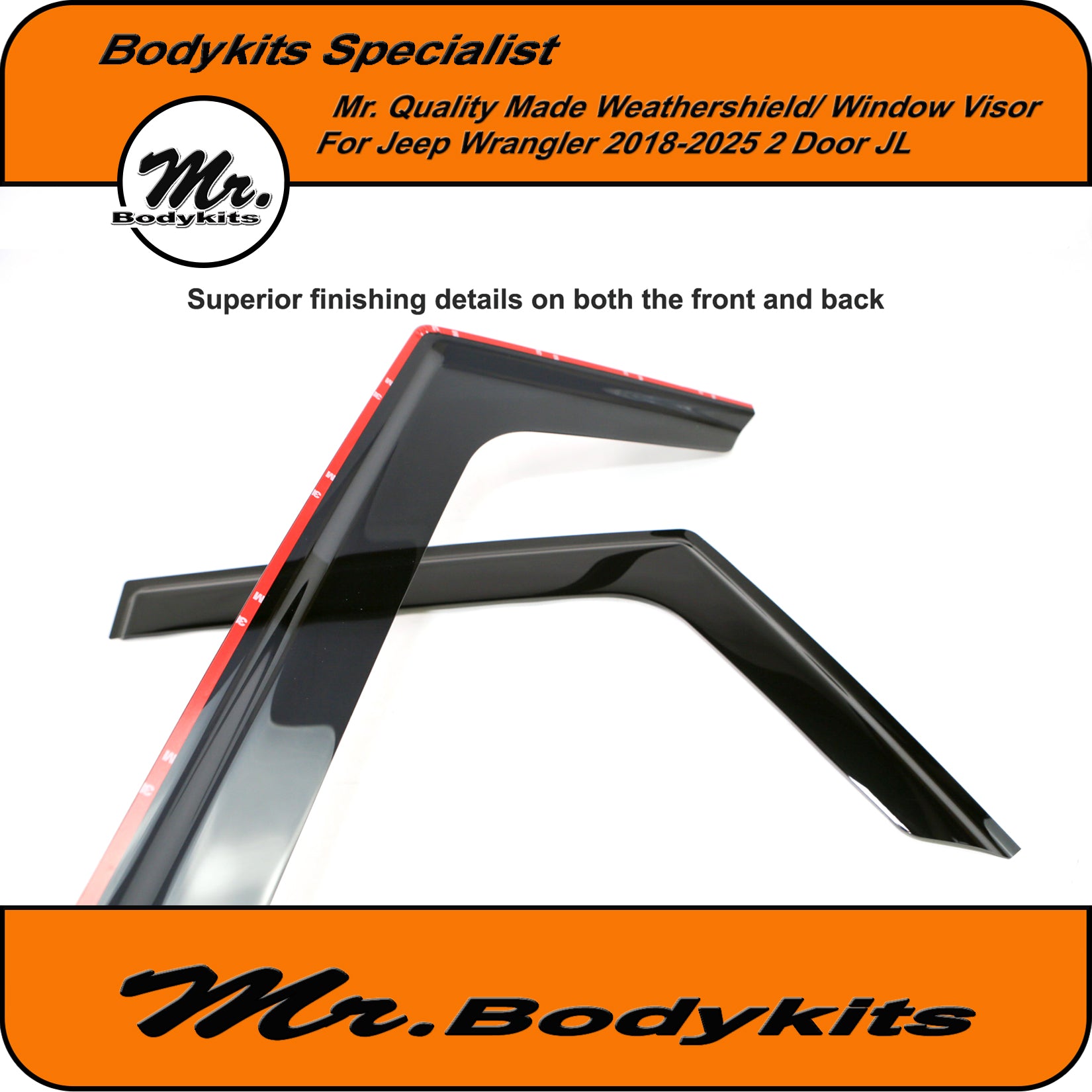 Quality-made weather shield/ window visor for Jeep Wrangler 2018-2024 JL 2 Door
