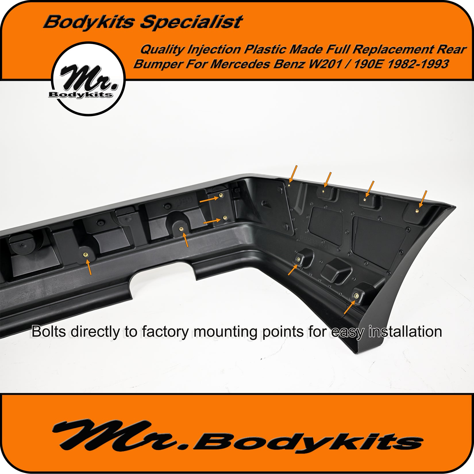 Pair this rear bumper with matching AMG-style front bumper, side skirts with door pods, rear louver, and rear spoiler to create a cohesive exterior upgrade for your W201.