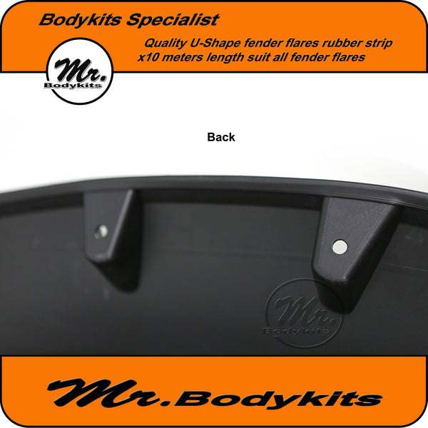 - U-shape design, make with anti-slip recessed groove line inside and rear back to prevent rubber strip movement and coming off from the fender flare.