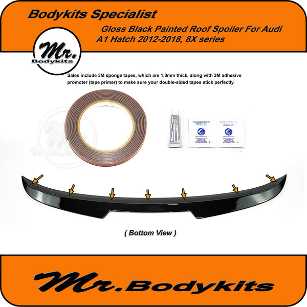 Gloss black plastic made rear roof spoiler for Audi A1 Hatch 2012-2018, 8X