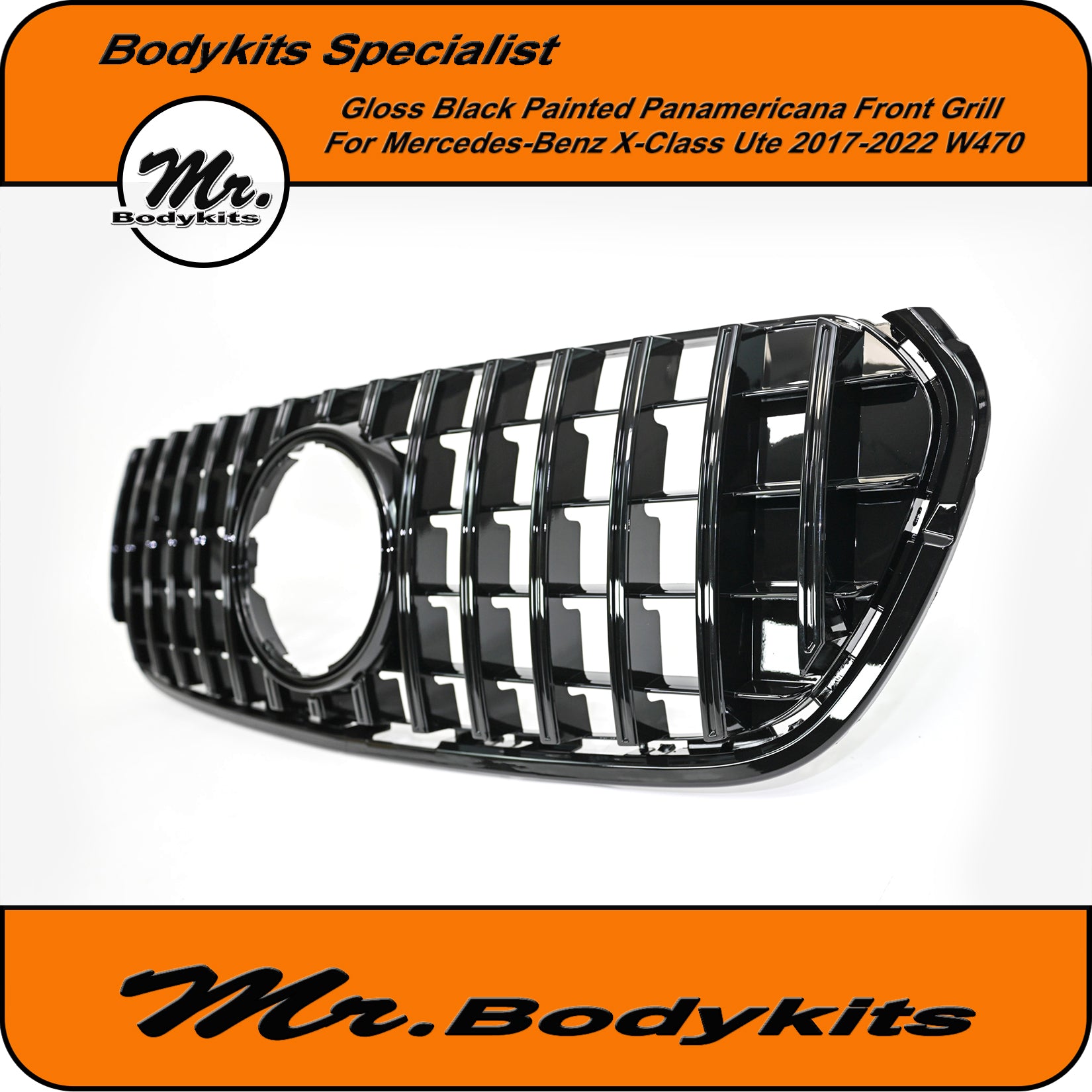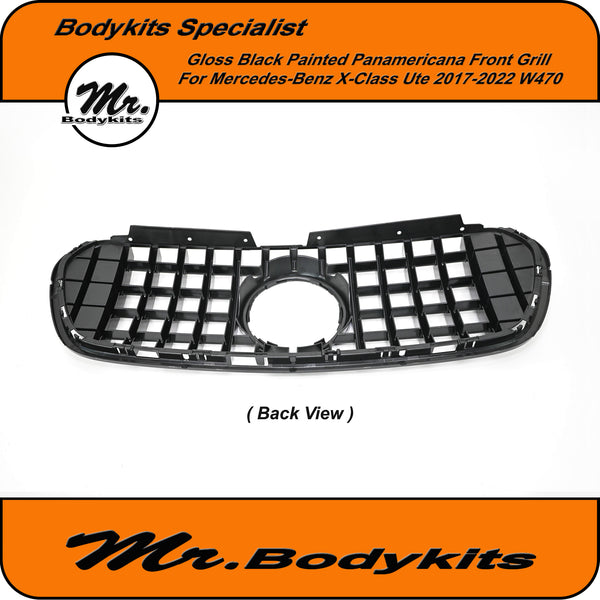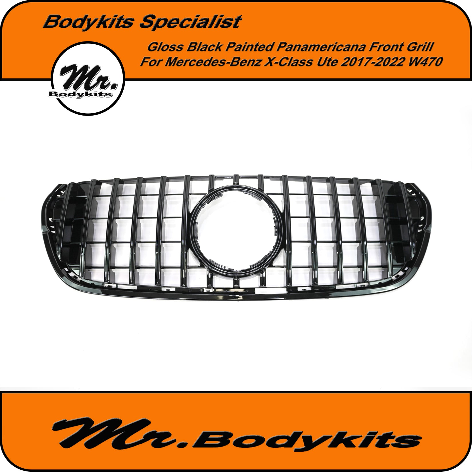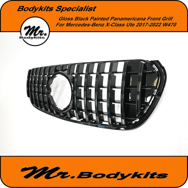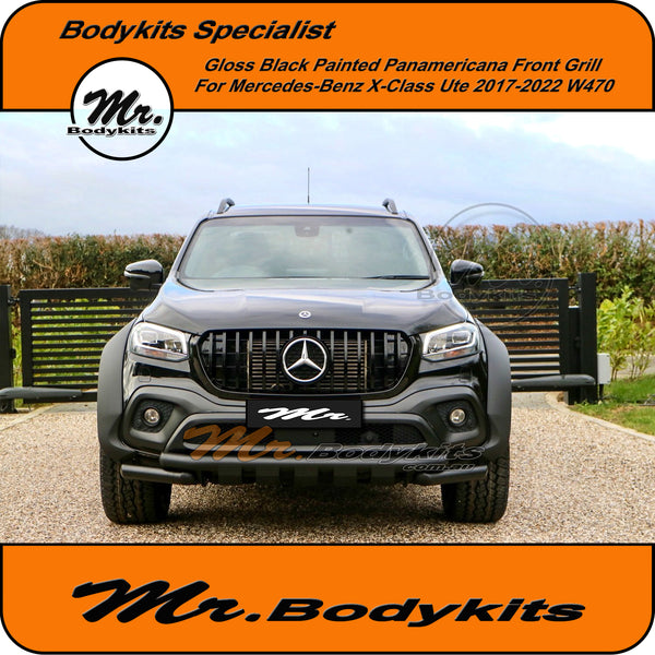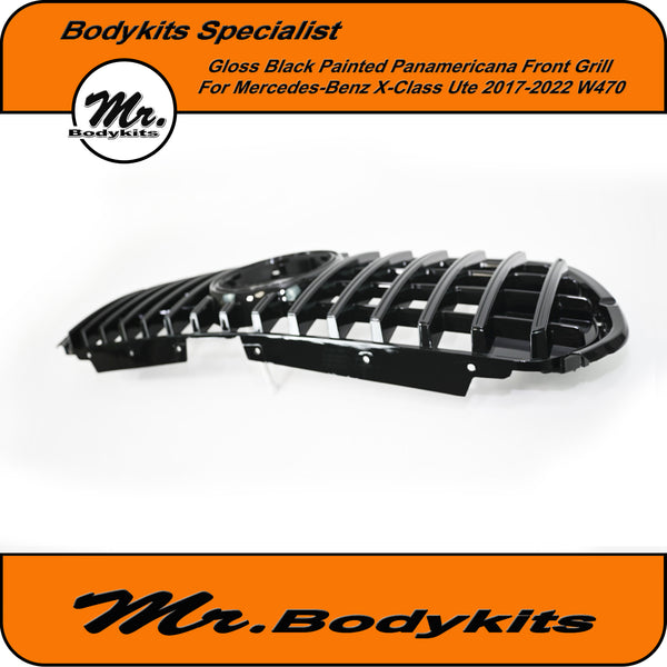 Gloss black painted Panamericana style replacement front bumper grille for Mercedes-Benz X-Class Ute 2017-2022