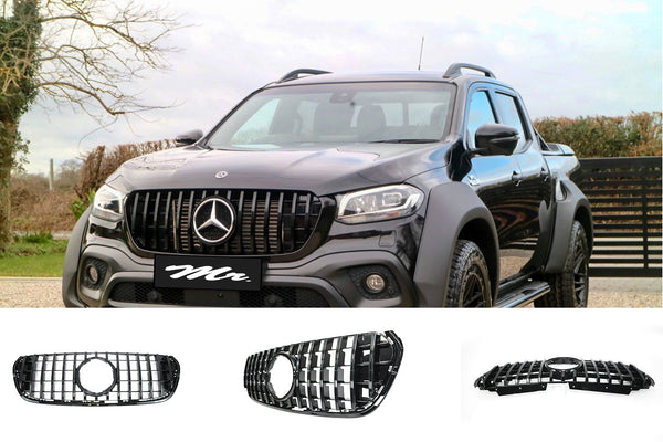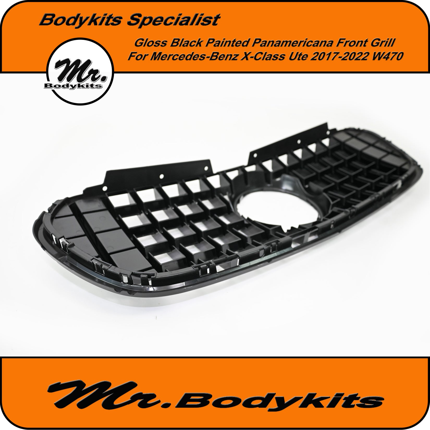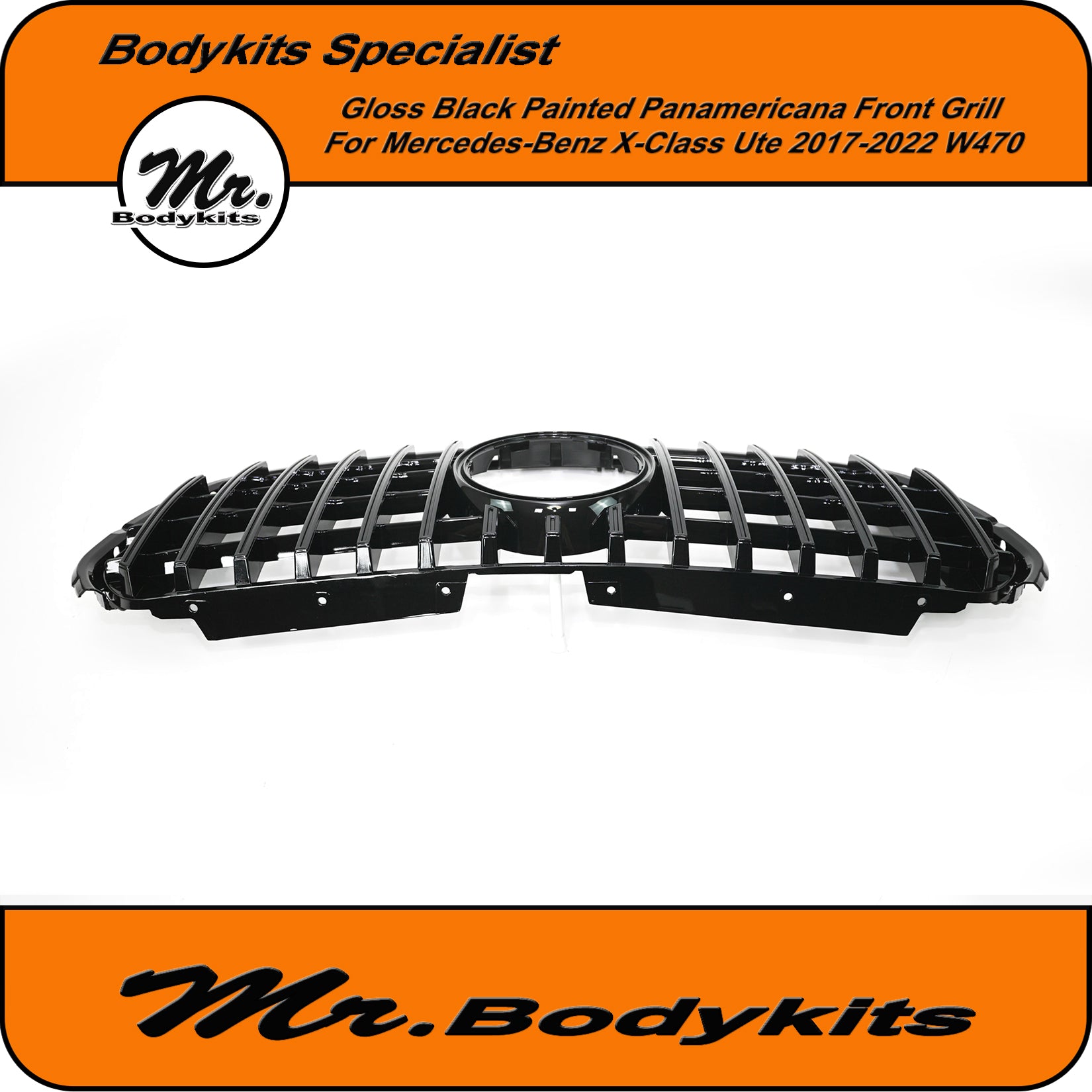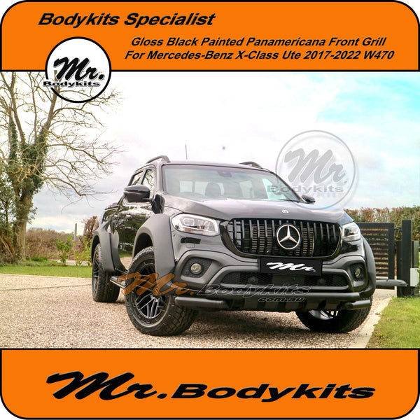 Gloss black painted Panamericana style replacement front bumper grille for Mercedes-Benz X-Class Ute 2017-2022