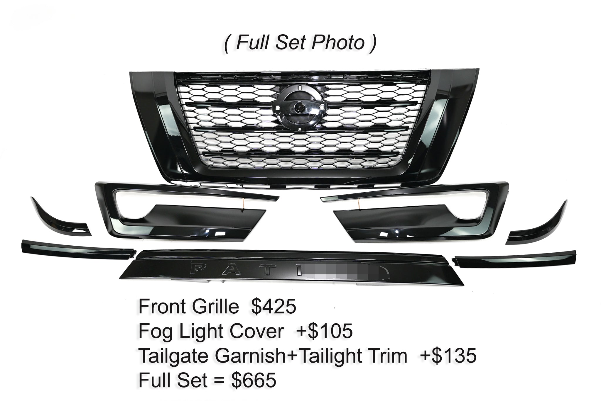 🔹 Tailgate Garnish & Taillight Trim – Complete the blackout look with a matching rear trim set for additional $125.