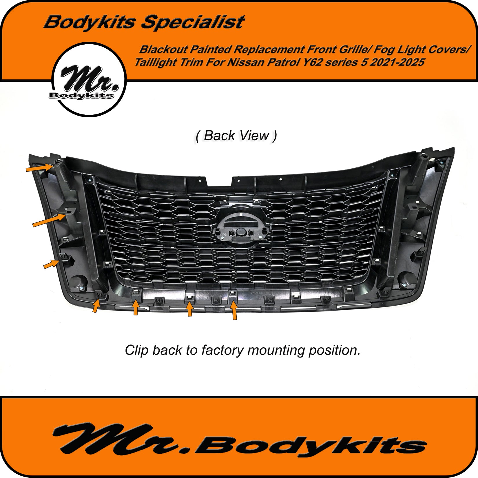 Upgrade the front-end appearance of your Nissan Y62 Patrol Series 5 (2020-2025) with this sleek blackout replacement grille. Designed for a direct factory replacement, this grille enhances your Patrol’s bold, aggressive look while maintaining OEM-style fitment.