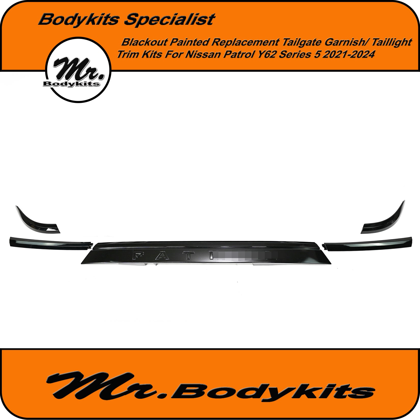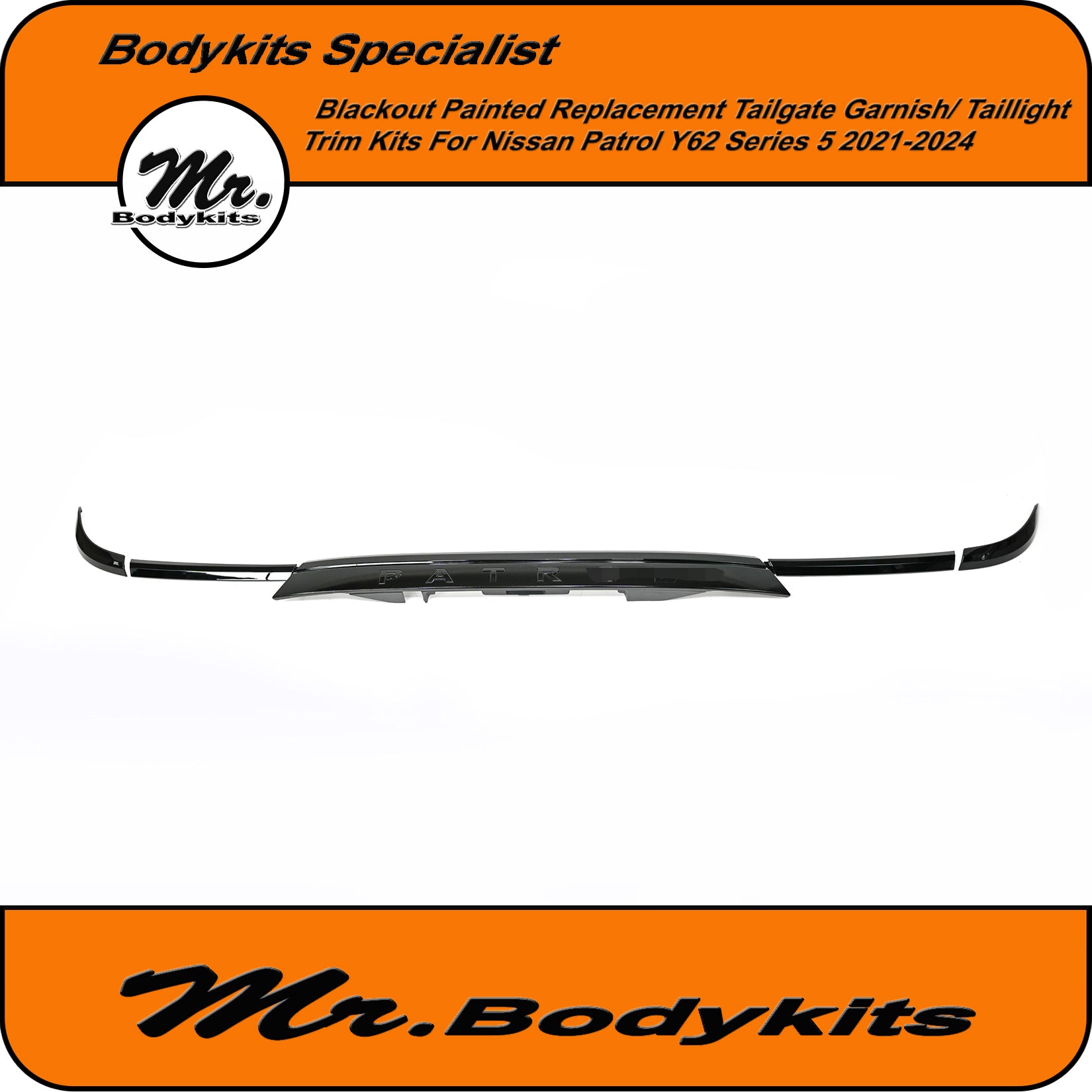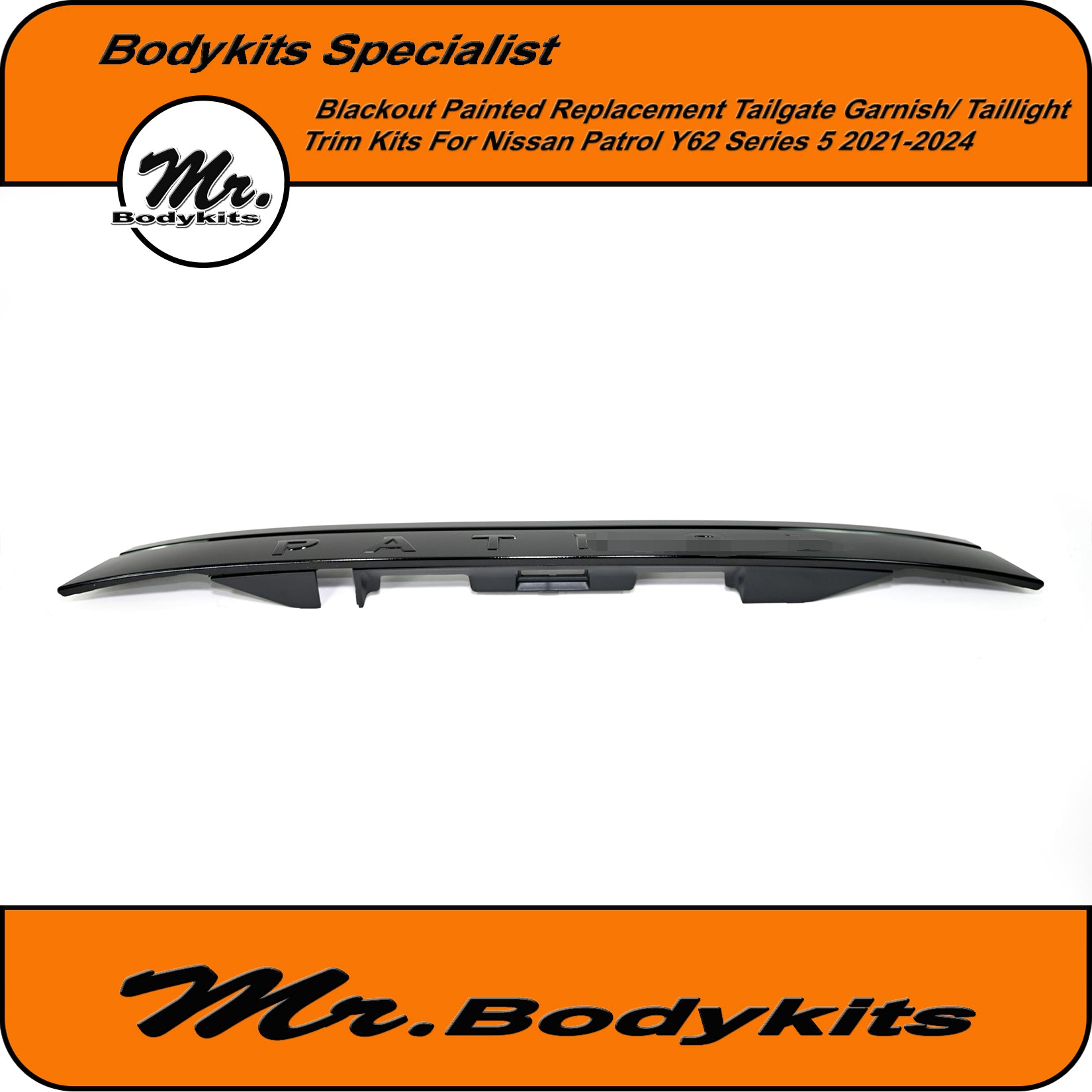 Blackout Black Painted Nissan Y62 Patrol Series 5 2020-2025 Tailgate Garnish Panel + Taillight Trims
