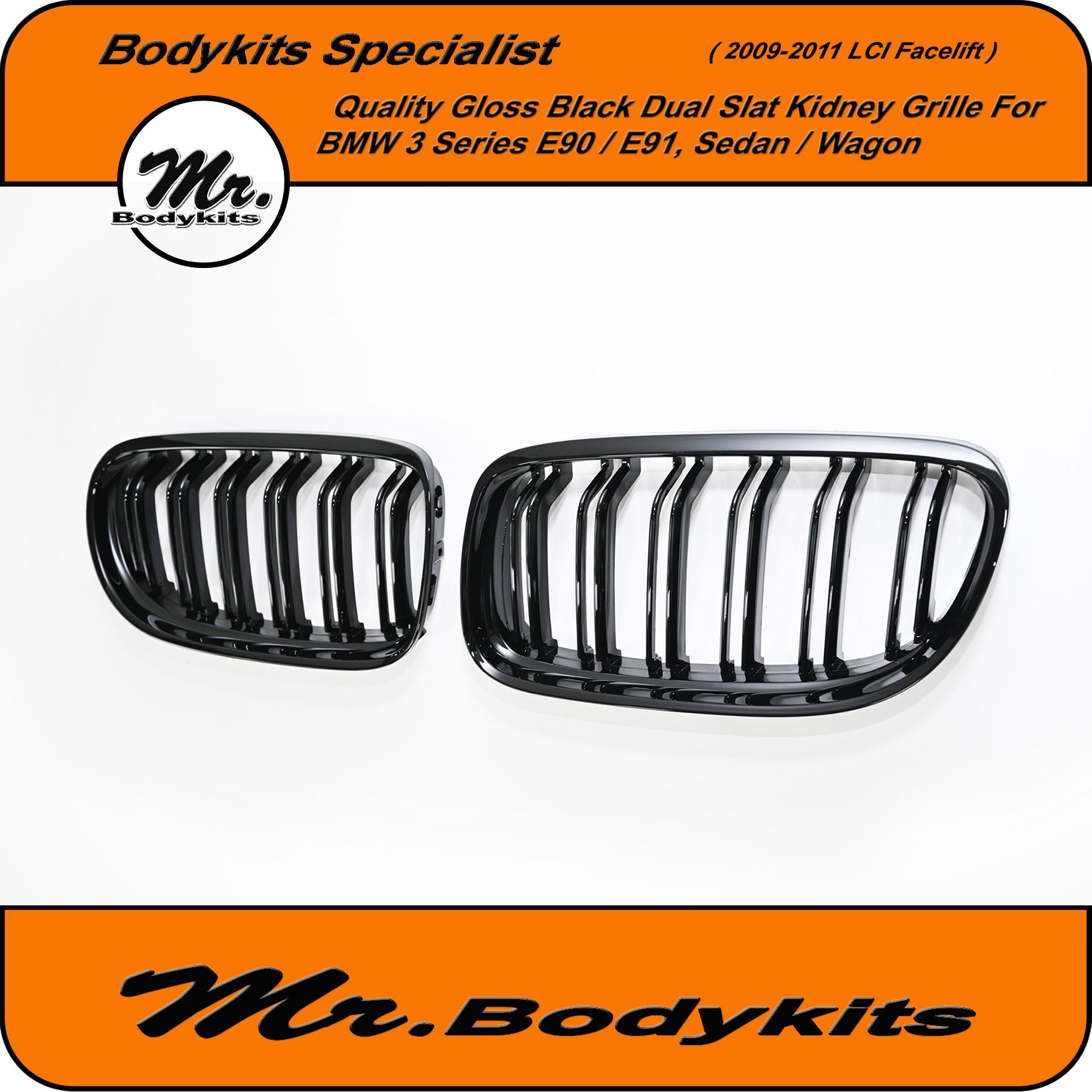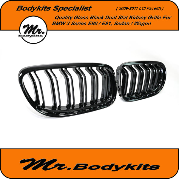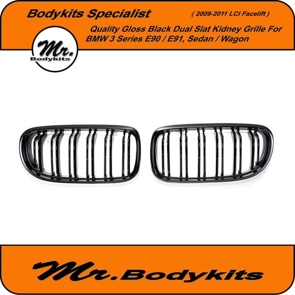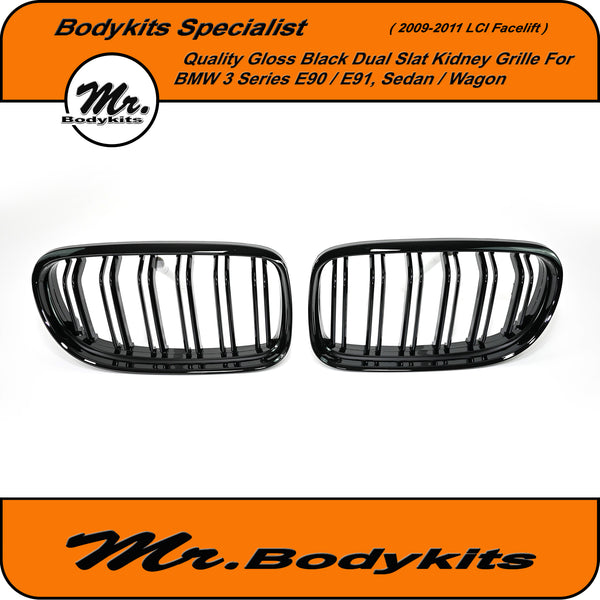 Quality-made BMW double slat replacement front bumper grille for BMW 3 series E90/ E91 sedan and wagon 2009-2011 LCI facelift