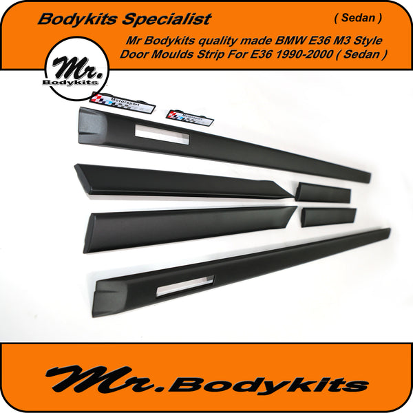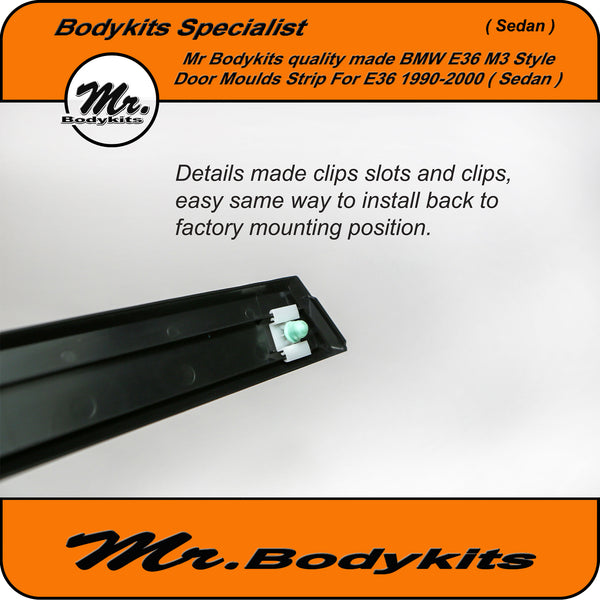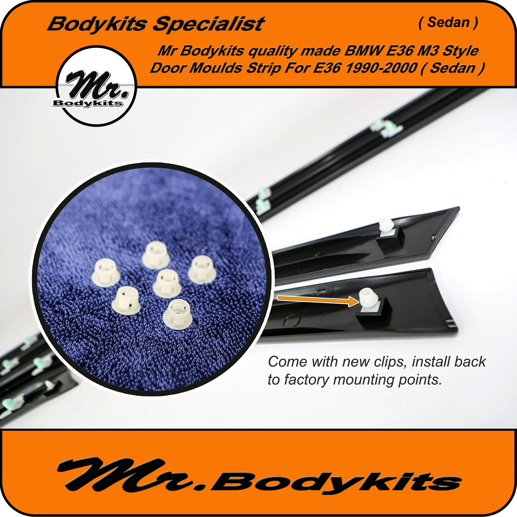 Brand new Mr E36 M3 style sedan exterior door moulding trim set with clips/ emblem badge,left and right side set. ( Sedan )