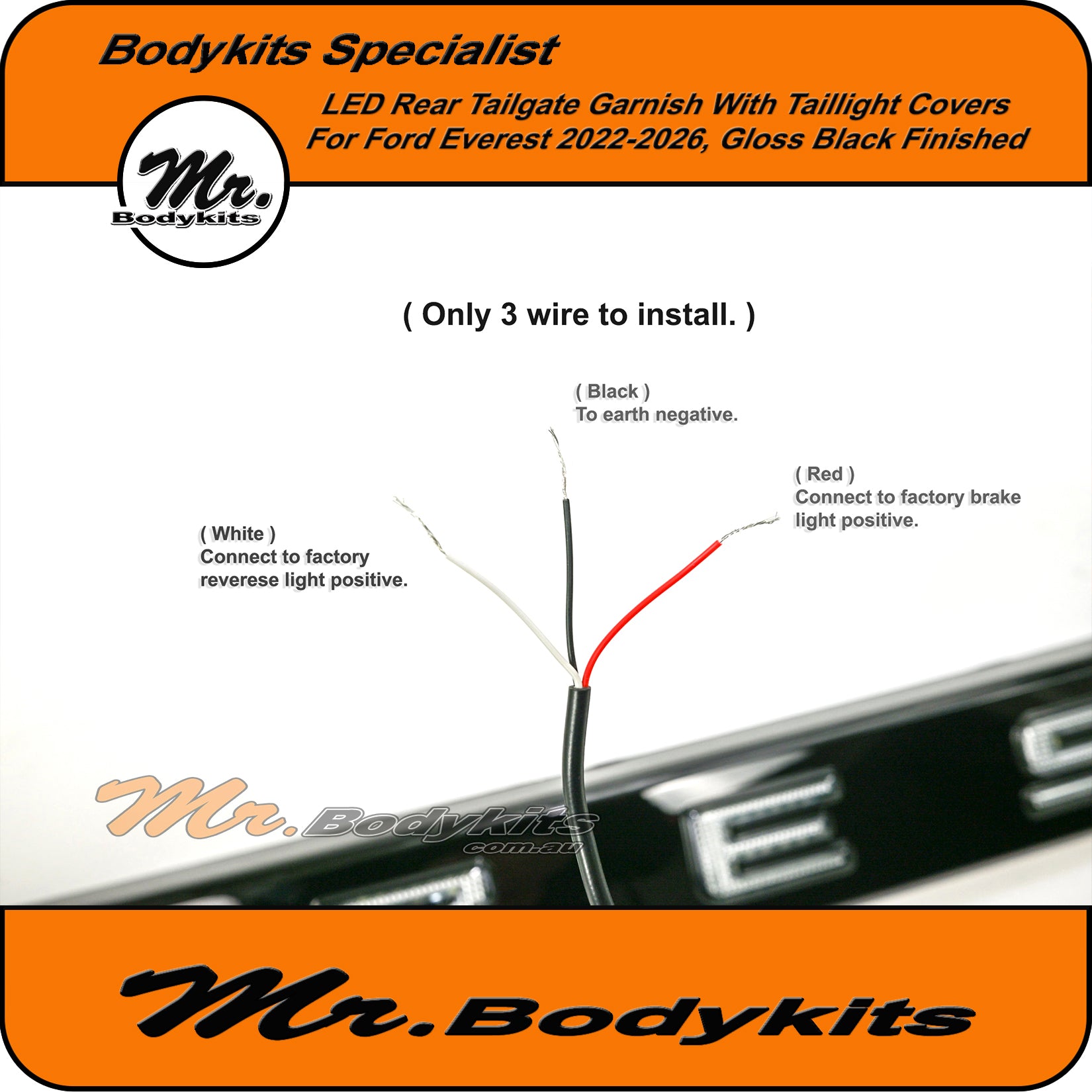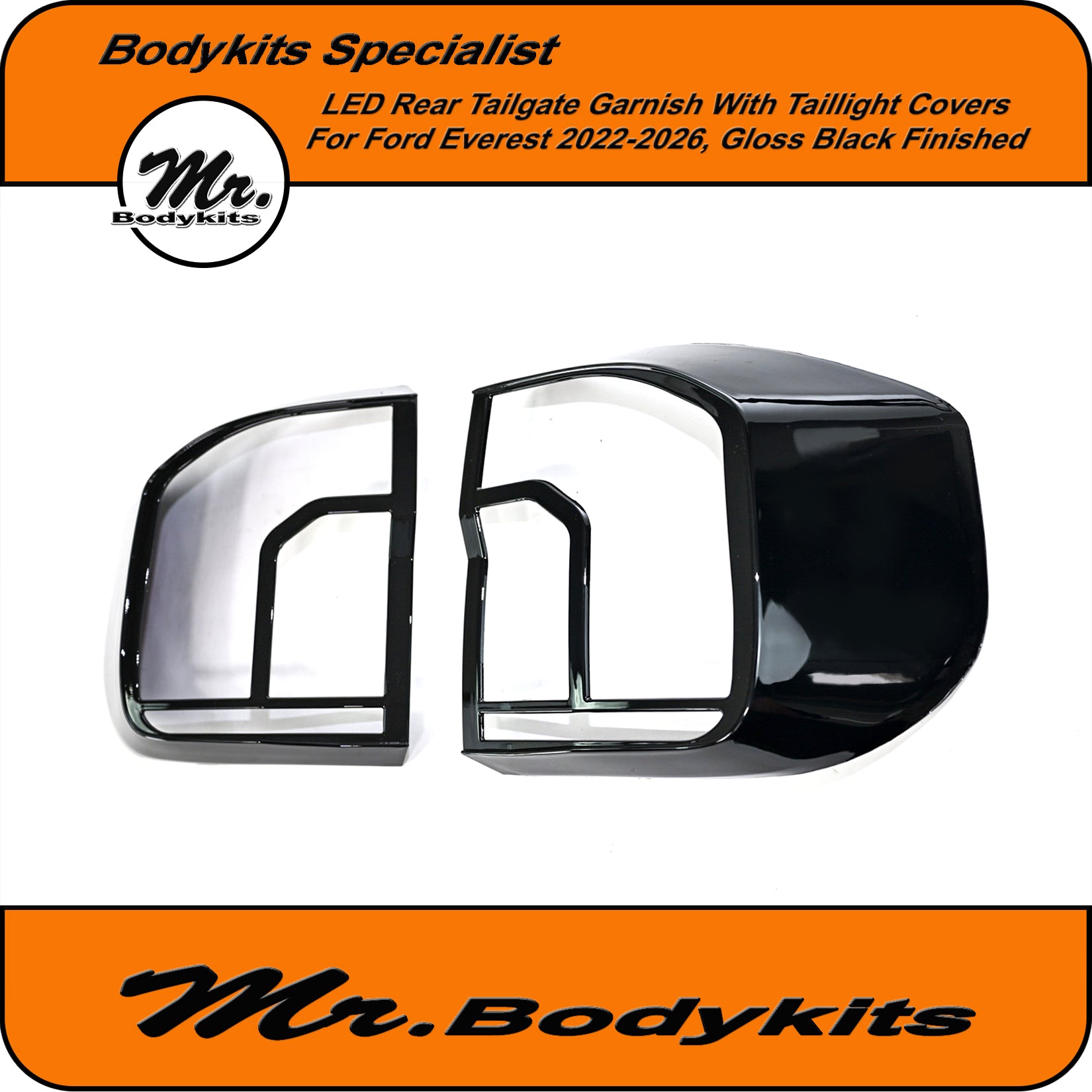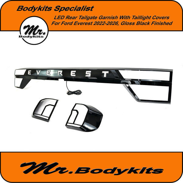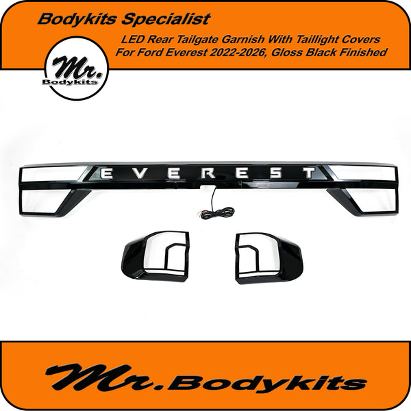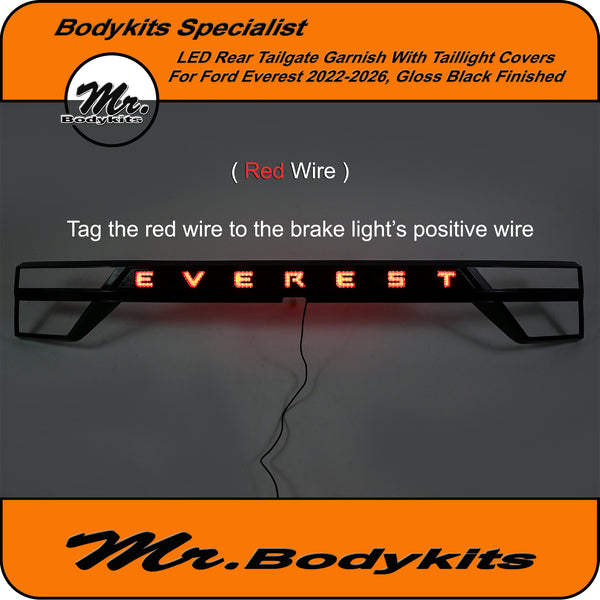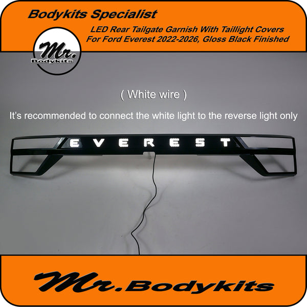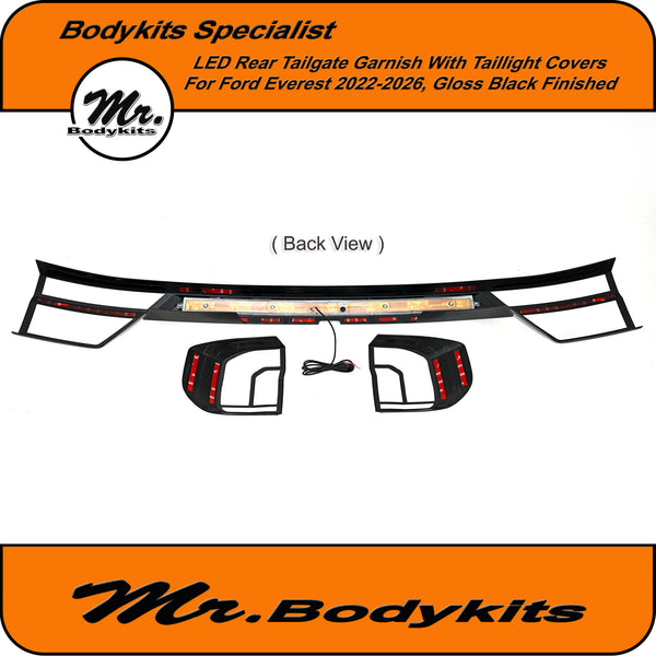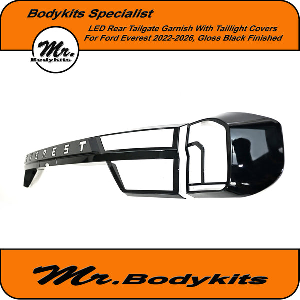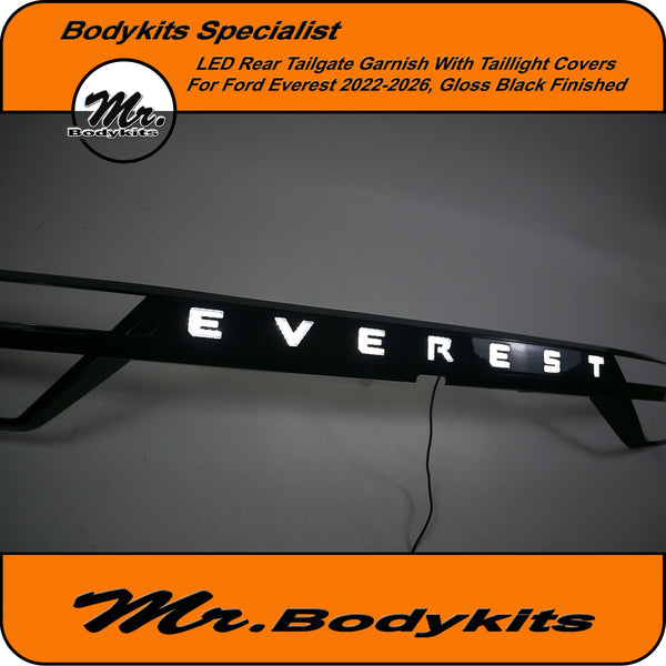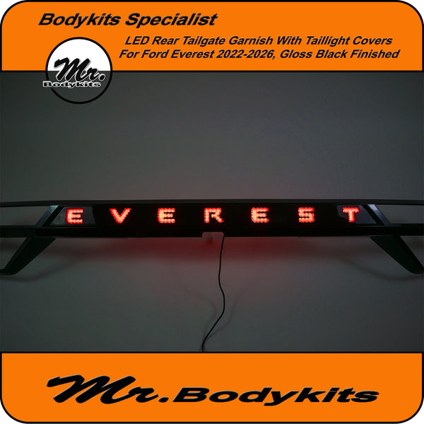 Upgrade the rear styling of your Ford Everest with this gloss black tailgate garnish panel—designed to offer both visual appeal and added functionality. This unit comes with integrated LED brake and reverse lighting, plus matching taillight covers for a cleaner, unified look across the back end.
